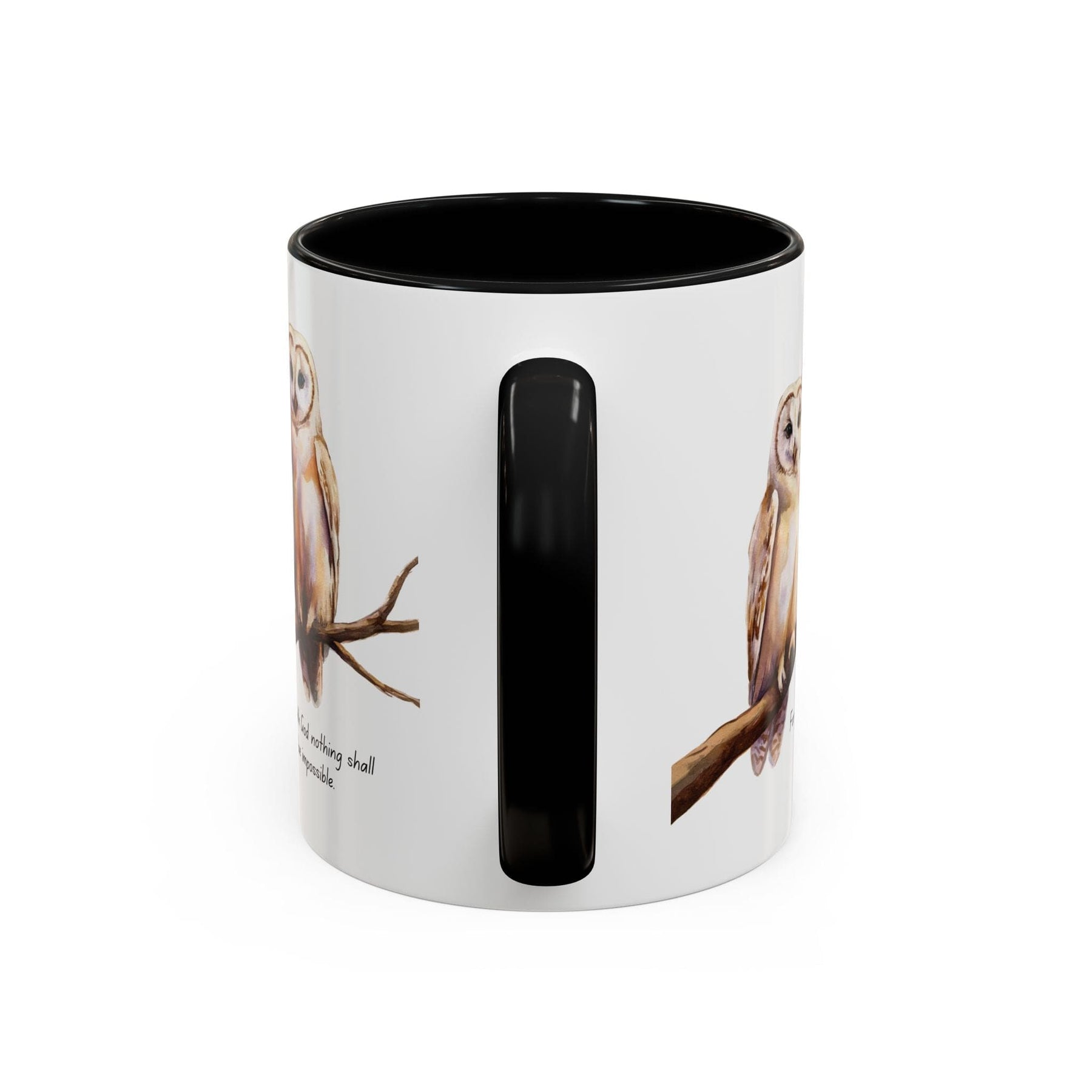 Ceramic Gift Mug - Two White Owls - Scripture Inspired - for with God Nothing Shall be Impossible