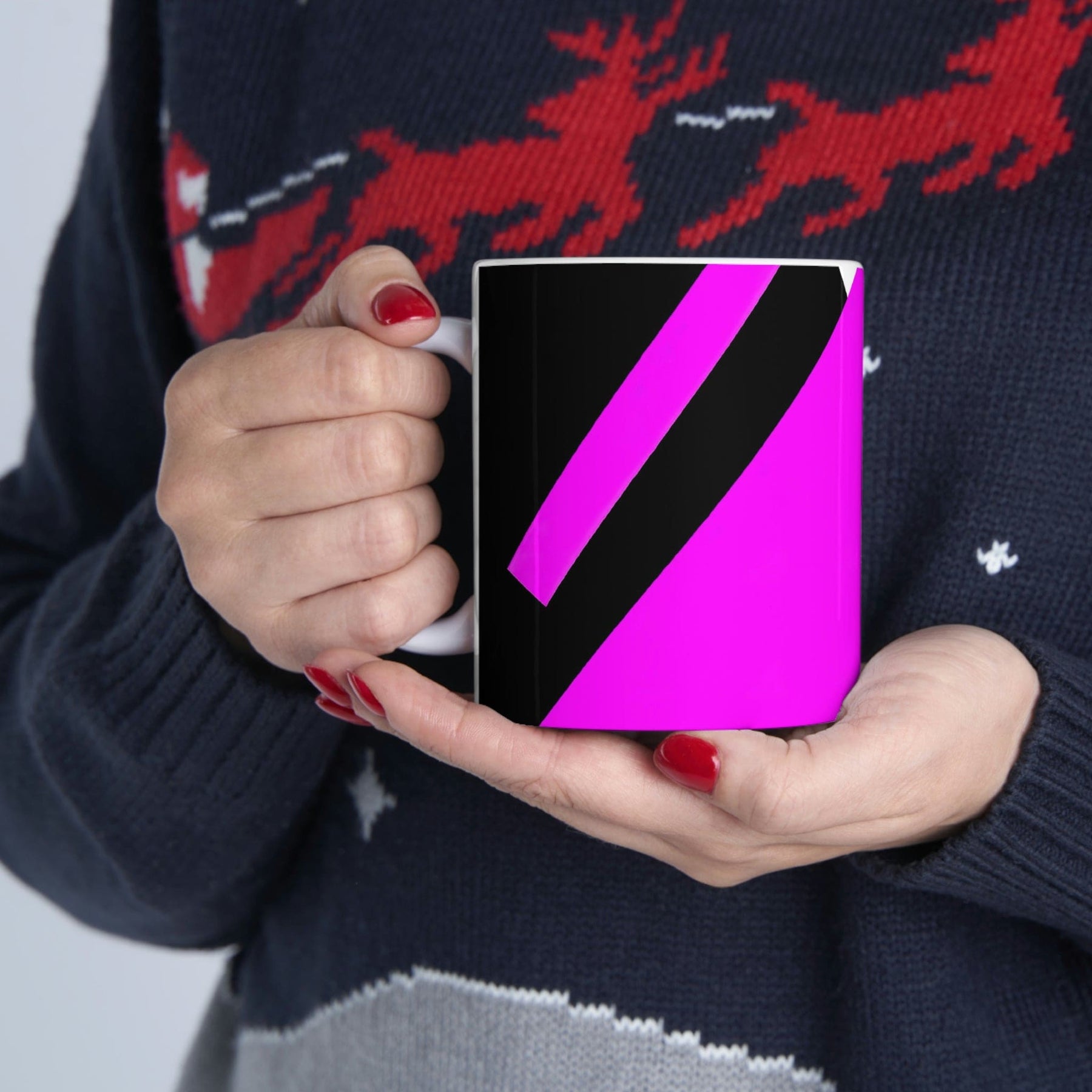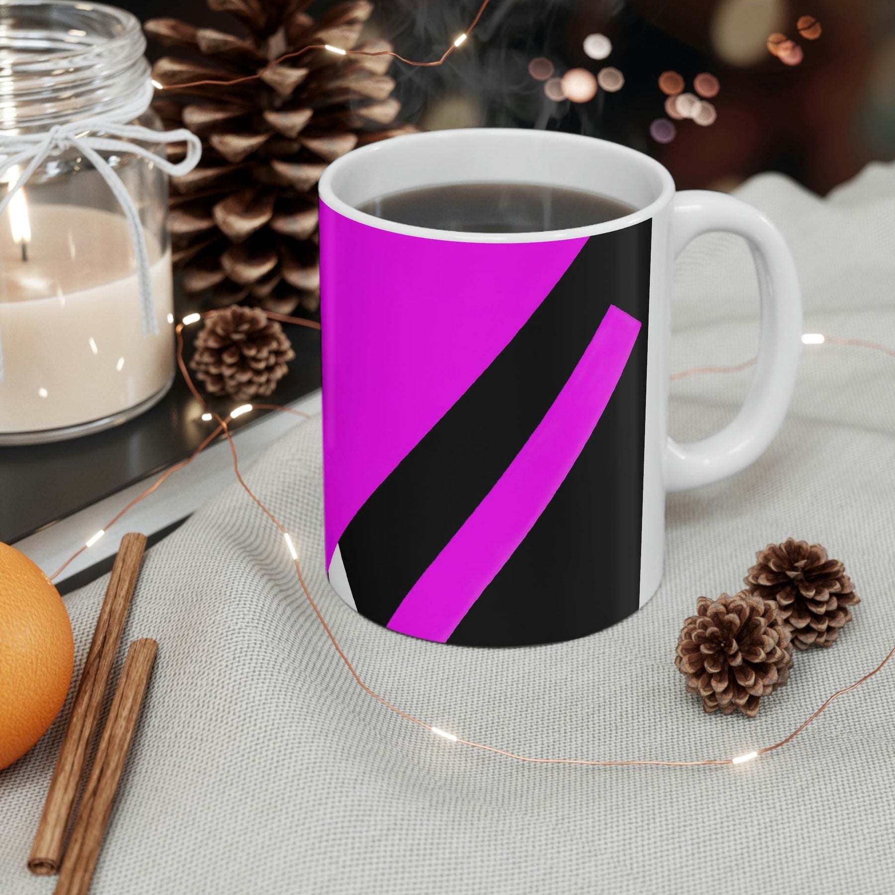 Black And Pink Geometric Pattern. Warm-up with a nice cuppa out of this customized ceramic coffee mug. Personalize it with cool designs, photos or logos to make that "aaahhh!" moment even better. It’s BPA and Lead-free, microwave & dishwasher-safe, and made of white, durable ceramic in 11-ounce size. Thanks to the advanced printing tech, your designs come to life with incredibly vivid colors – the perfect gift for coffee, tea, and chocolate lovers.