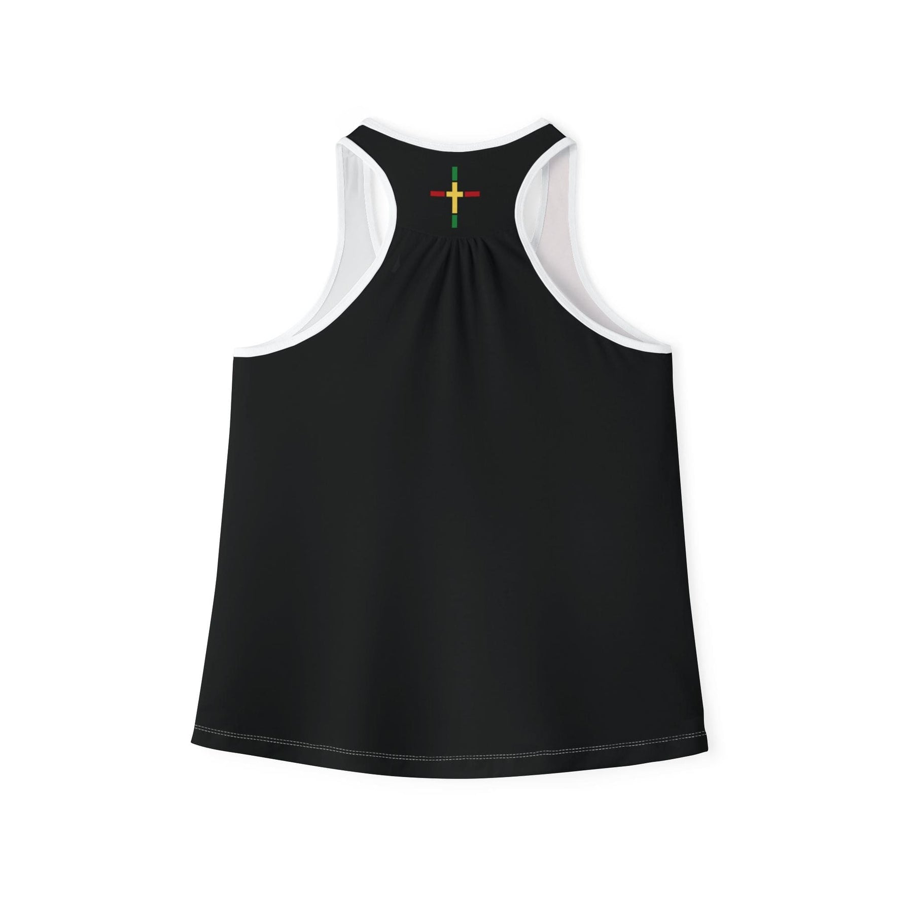 Womens Tank Top, Black Red Yellow Green Stripes. Made for total comfort in peak performance situations, this womens racerback top is made with 94% polyester and 6% spandex jersey knit fabric. Choose between white or black seam binding color and create an instant favorite for anyone with an active lifestyle.
