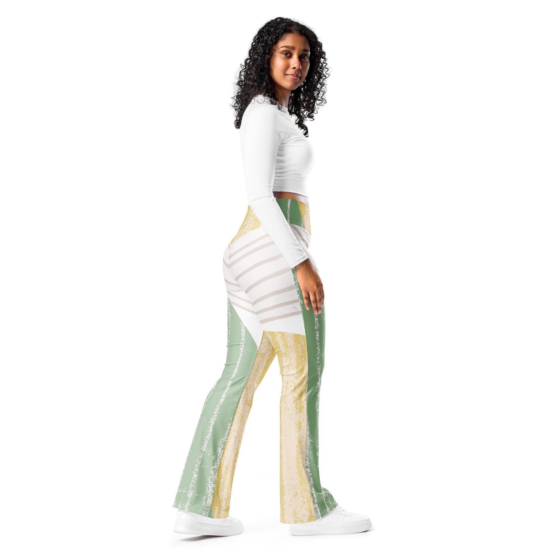 Womens Flare Leggings. Designed to enhance your figure, these trendy leggings feature a high waist and a butt-lifting cut. The flared leg bottoms add a touch of style and make the leggings comfortable. Wear them on a walk, to the gym, or style them up with a bomber jacket or hoodie.
