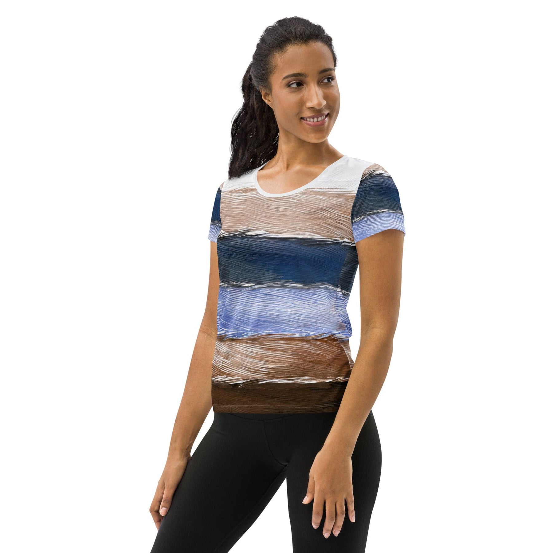 Womens Stretch Fit Athletic Sports T-Shirt, Rustic Hues Pattern. Our Women's Stretch Fit Athletic Sports T-shirt is engineered to enhance your performance and comfort during workouts. Crafted from premium stretch fabric, this t-shirt offers a form-fitting yet flexible fit that moves with your body, allowing for unrestricted movement. The moisture-wicking properties of the fabric keep you dry and comfortable, even during the most intense exercise sessions. Designed with an athletic silhouette, featuring a crew neckline and short sleeves, this t-shirt provides a classic and versatile look suitable for any activity. Whether you're hitting the gym, going for a run, or participating in sports, this t-shirt is your ultimate choice for optimal performance and style.