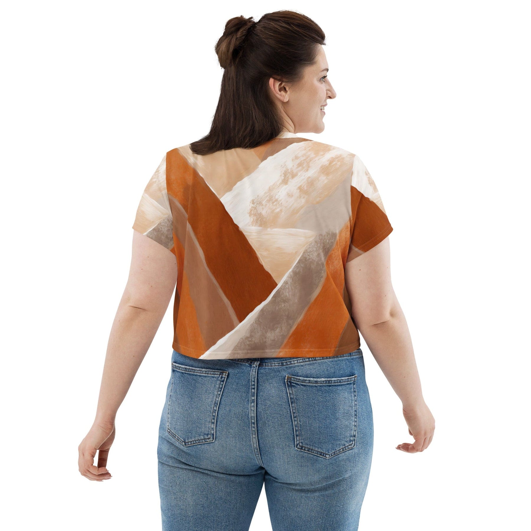 Womens Stretch Fit Crop Tee Jersey, Boho Watercolor Print. Our women's crop tee jersey offers a delightful blend of comfort and style, perfect for any casual occasion. Crafted from soft, breathable fabric, this chic top features a cropped silhouette that pairs effortlessly with high-waisted bottoms for a trendy look. The crew neckline and short sleeves enhance its laid-back appeal, making it an ideal choice for workouts, outings, or lounging at home. This versatile piece is a must-have addition to your wardrobe, ensuring you stay fashionable and comfortable all day long.