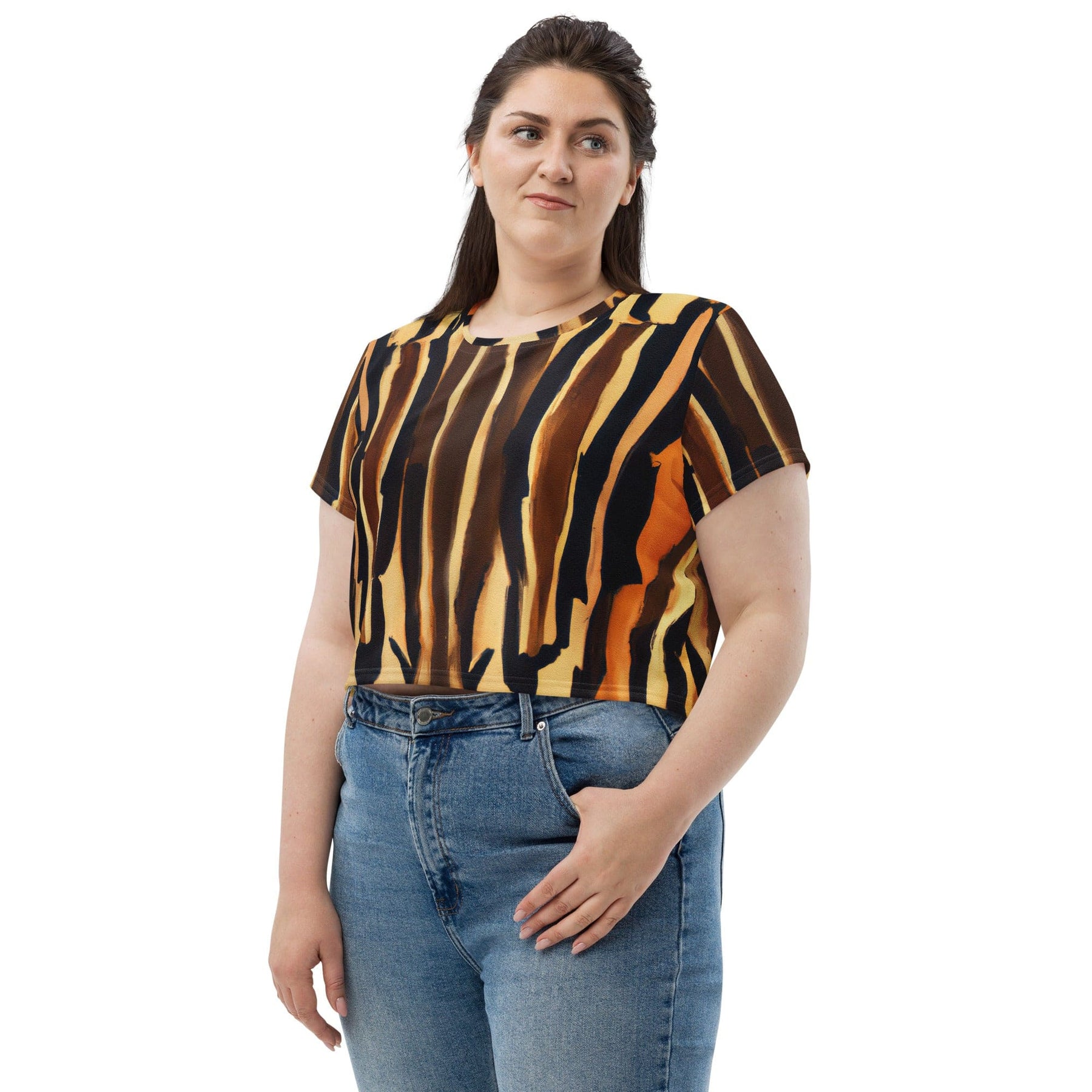 Womens Stretch Fit Crop Tee Jersey, Zorse Lines Print. Our women's crop tee jersey offers a delightful blend of comfort and style, perfect for any casual occasion. Crafted from soft, breathable fabric, this chic top features a cropped silhouette that pairs effortlessly with high-waisted bottoms for a trendy look. The crew neckline and short sleeves enhance its laid-back appeal, making it an ideal choice for workouts, outings, or lounging at home. This versatile piece is a must-have addition to your wardrobe, ensuring you stay fashionable and comfortable all day long.