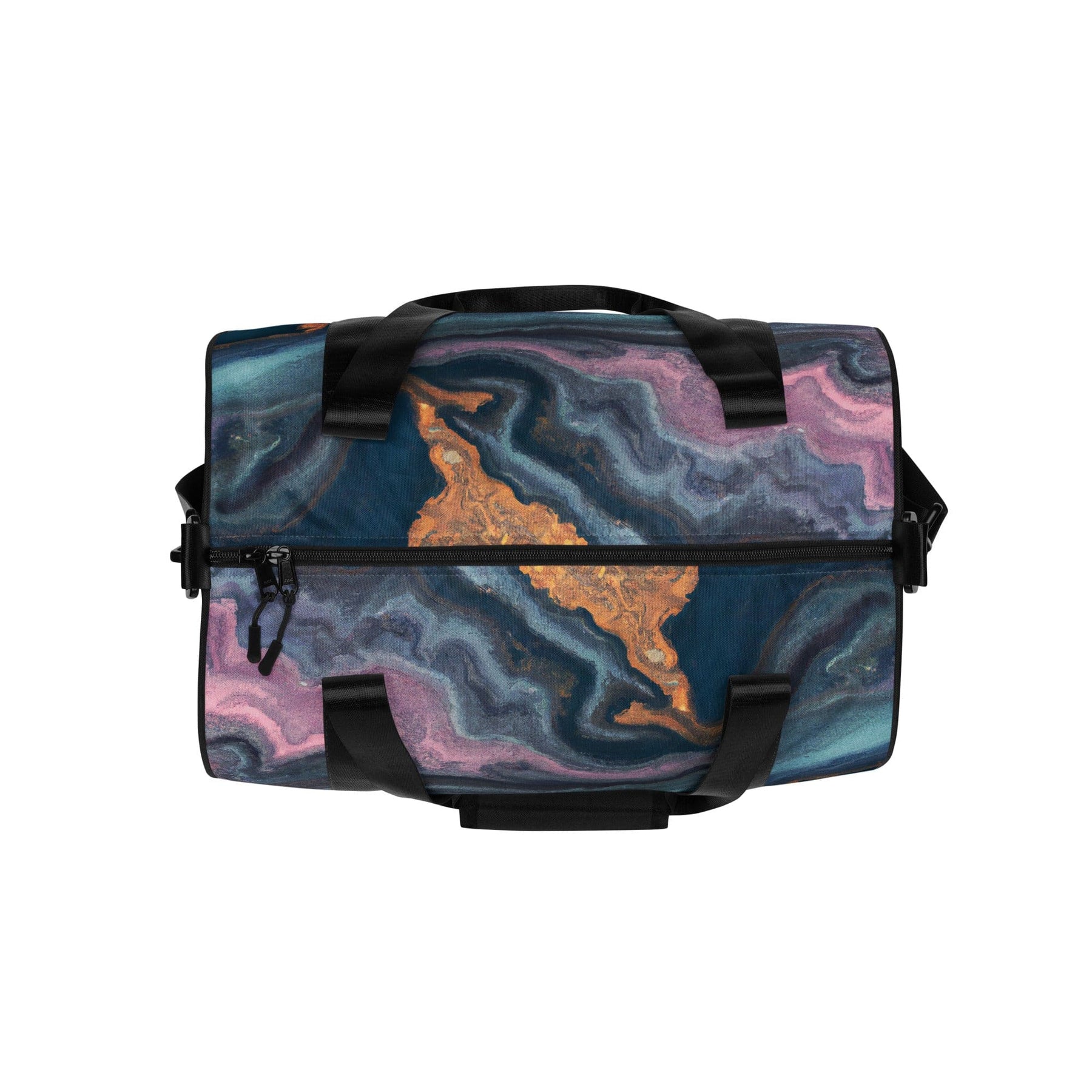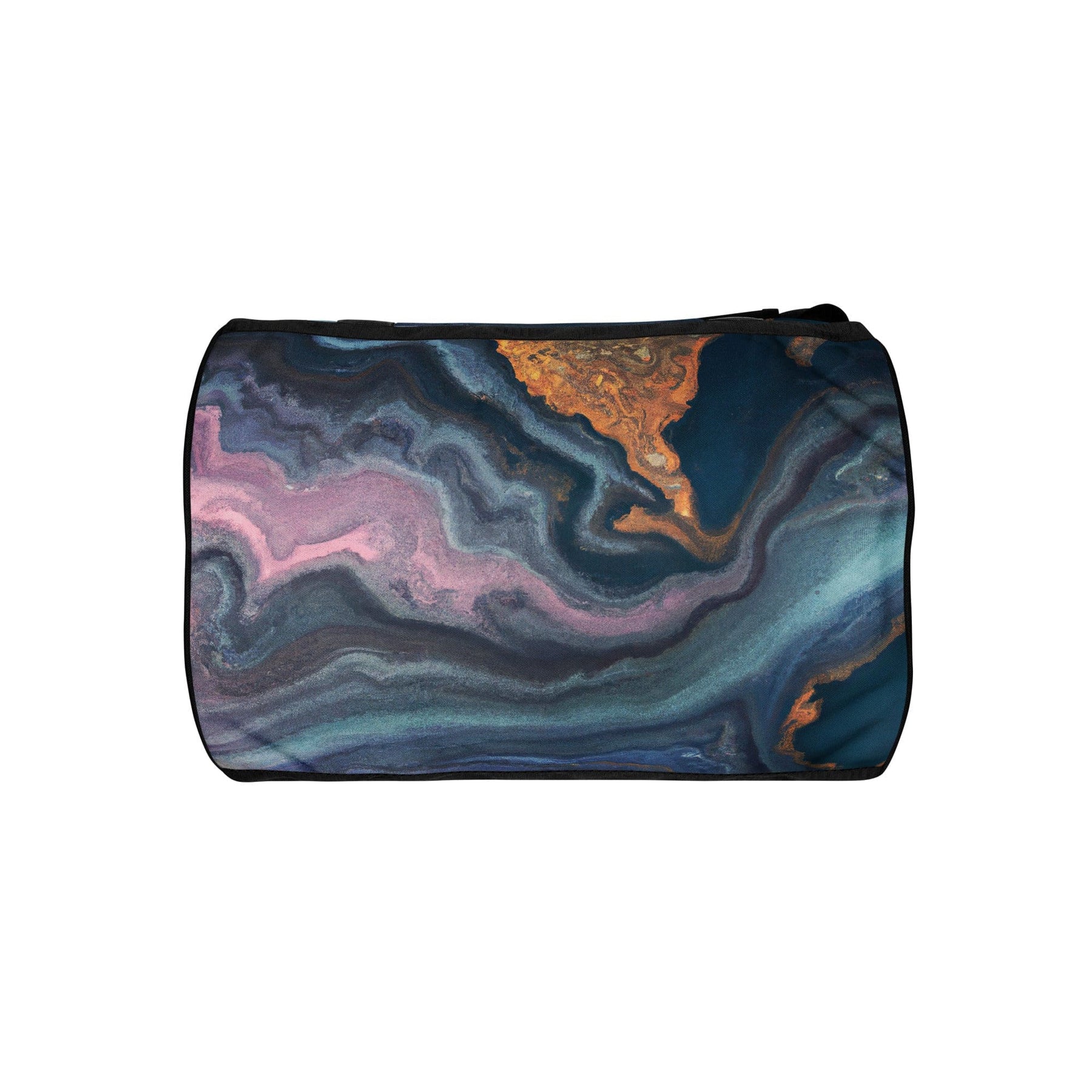 Crossbody Water-Resistant Travel Bag, Blue Pink Marble Swirl Print. Ready to get your fitness on? Add some punch to pumping iron with this bag. Made from 100% polyester and sturdy, water-resistant fabric, this bag is fun meets function. And it’s got pockets!