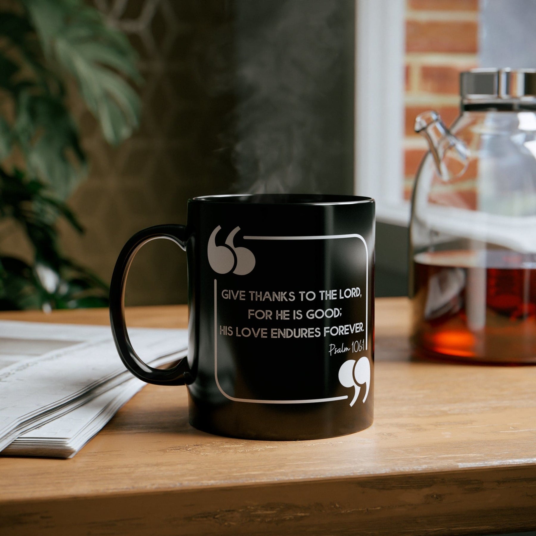 Black Ceramic Mug - 11oz - Give Thanks to the Lord