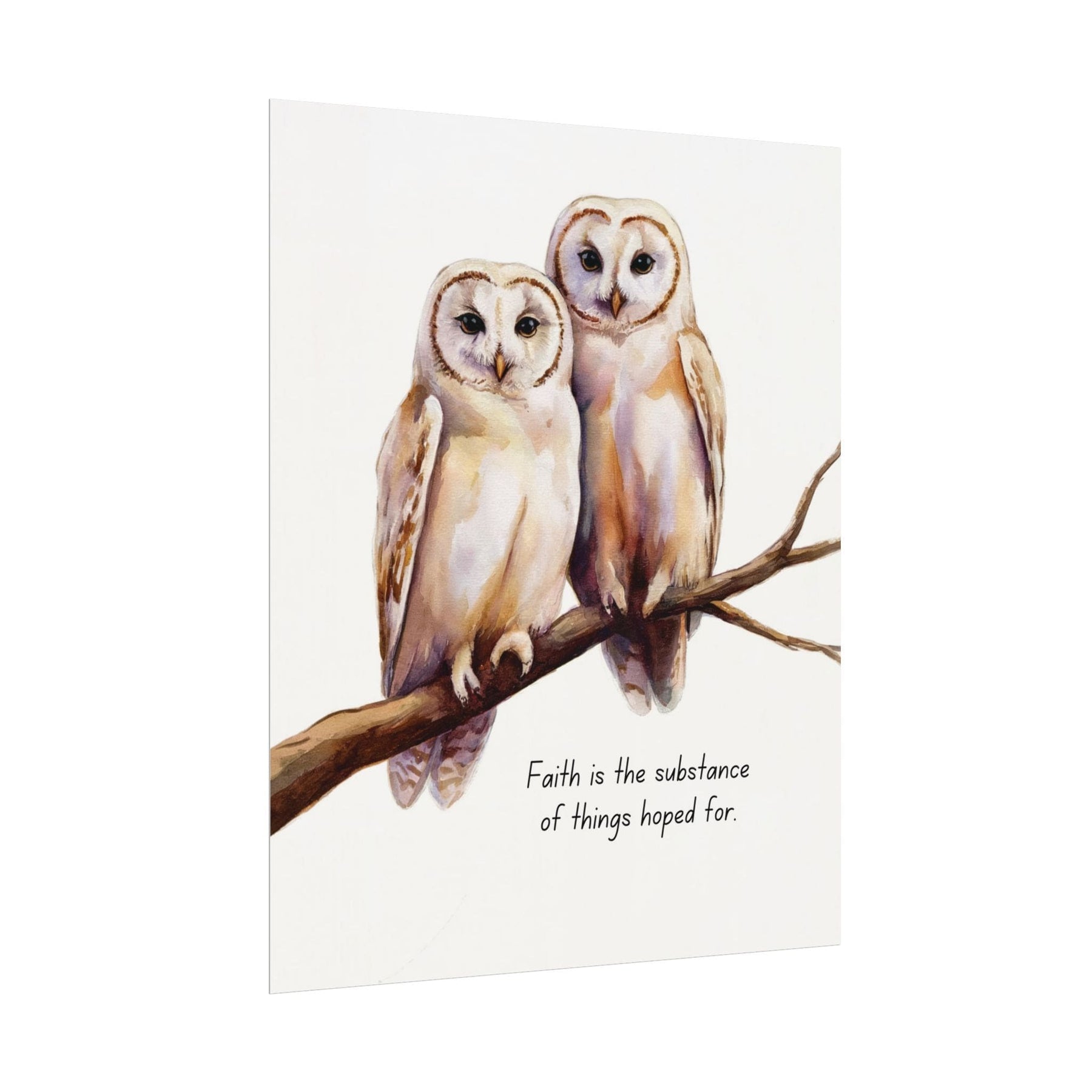 Wall Decor - Giclee Print - Two White Owls - Faith is the Substance of Things Hoped