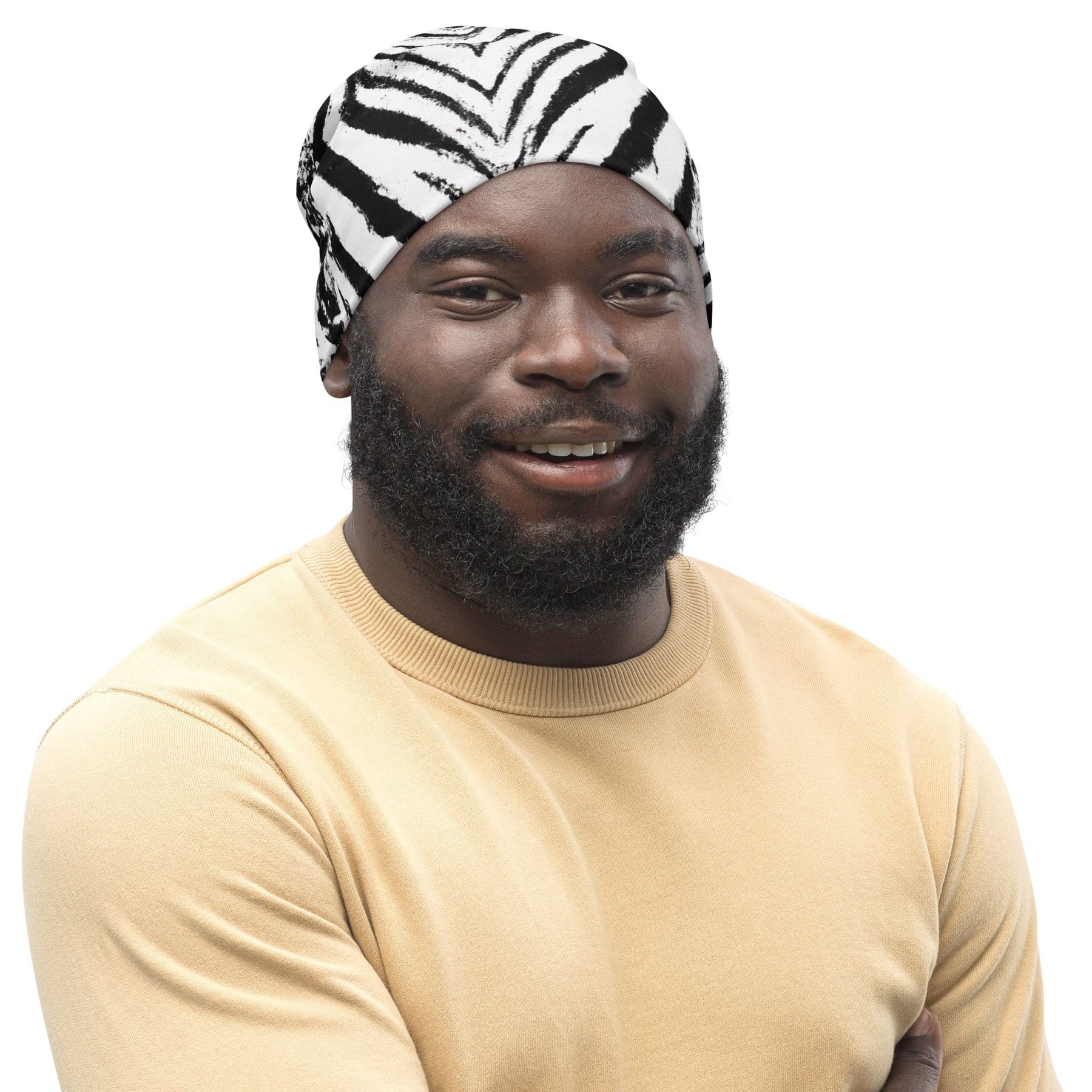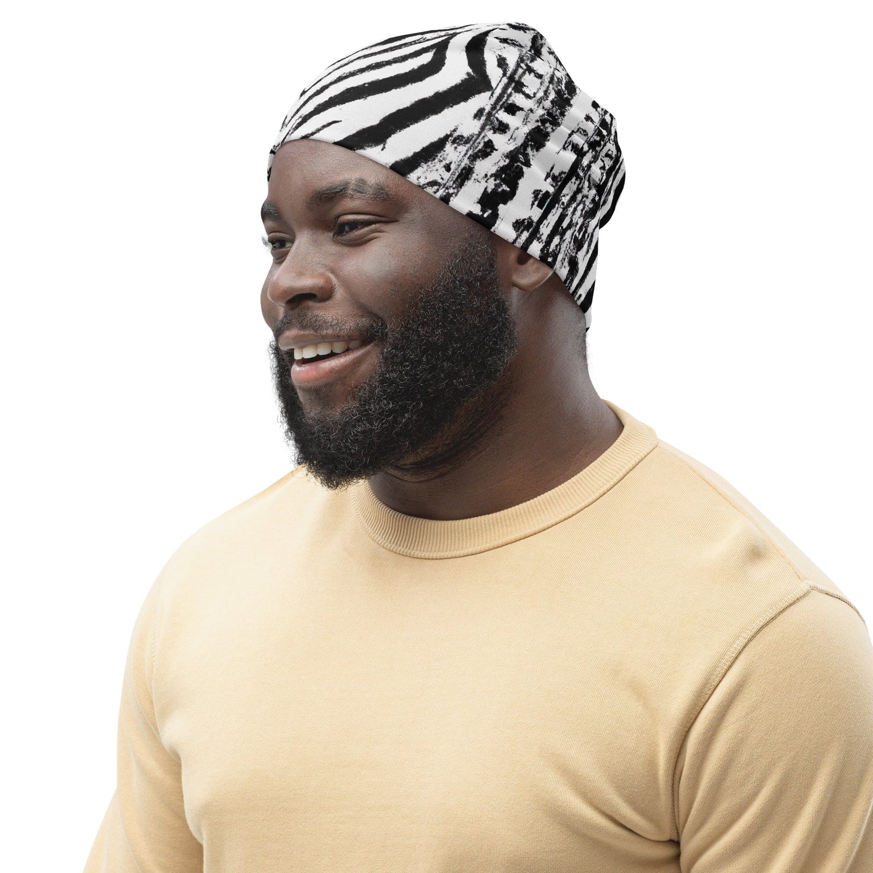 Double-layered Beanie Hat Black White Native Print - Unisex/Beanie