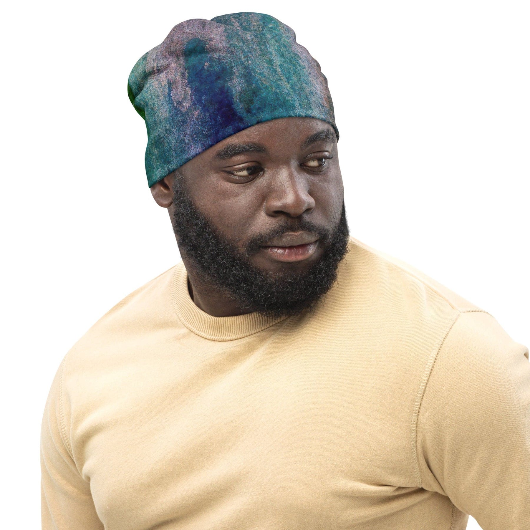 Double-layered Beanie Hat Blue Hue Watercolor Abstract Print