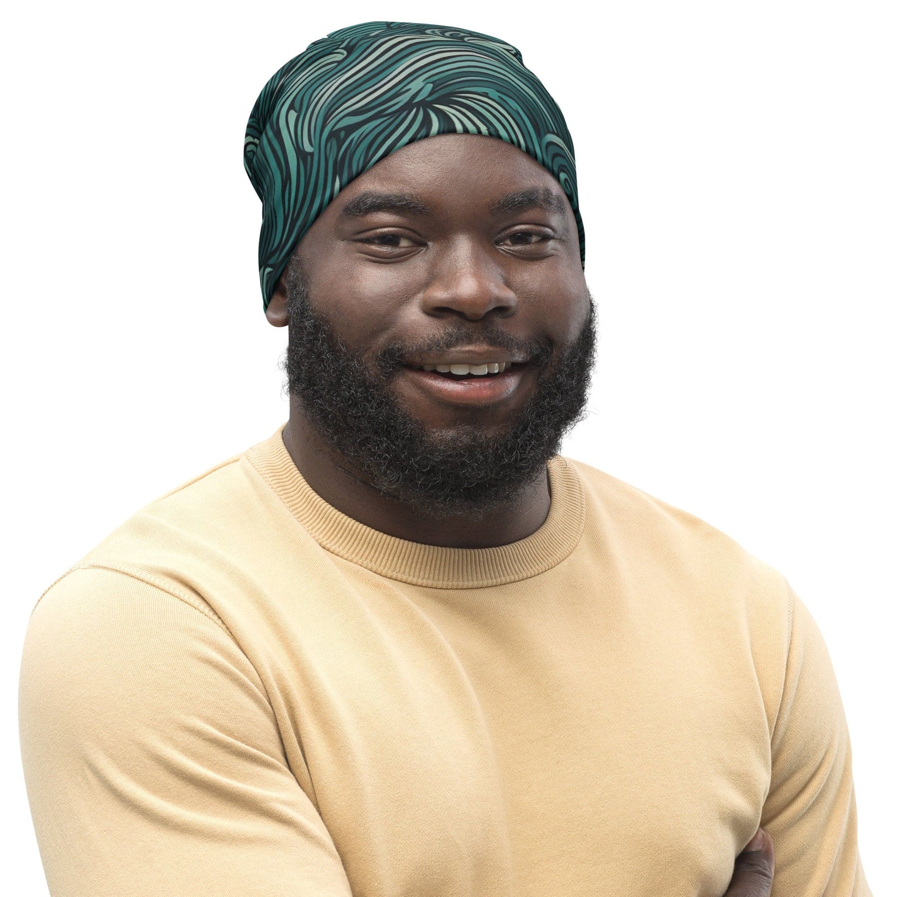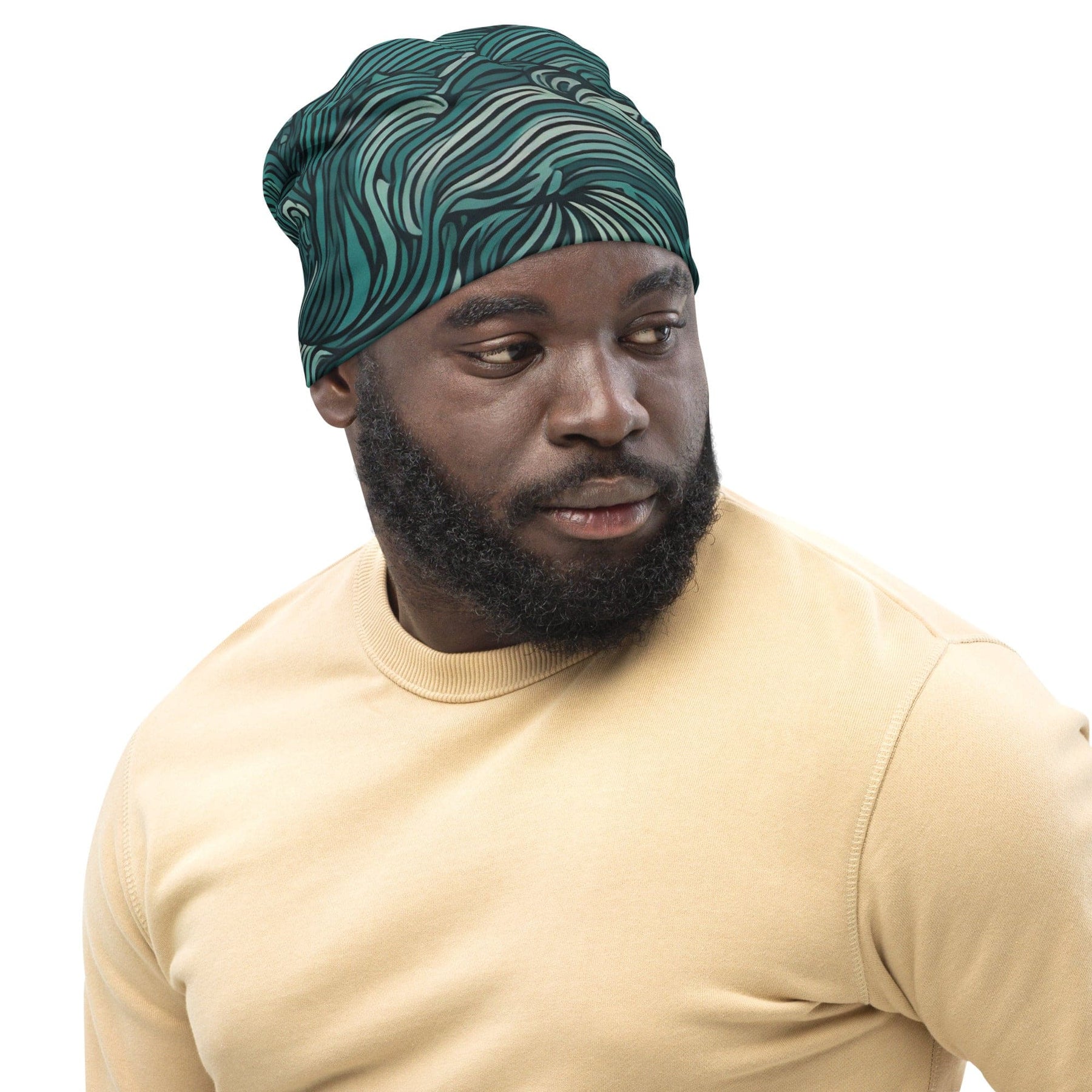 Double-layered Beanie Hat Mint Green Water Wave Print - Unisex/Beanie