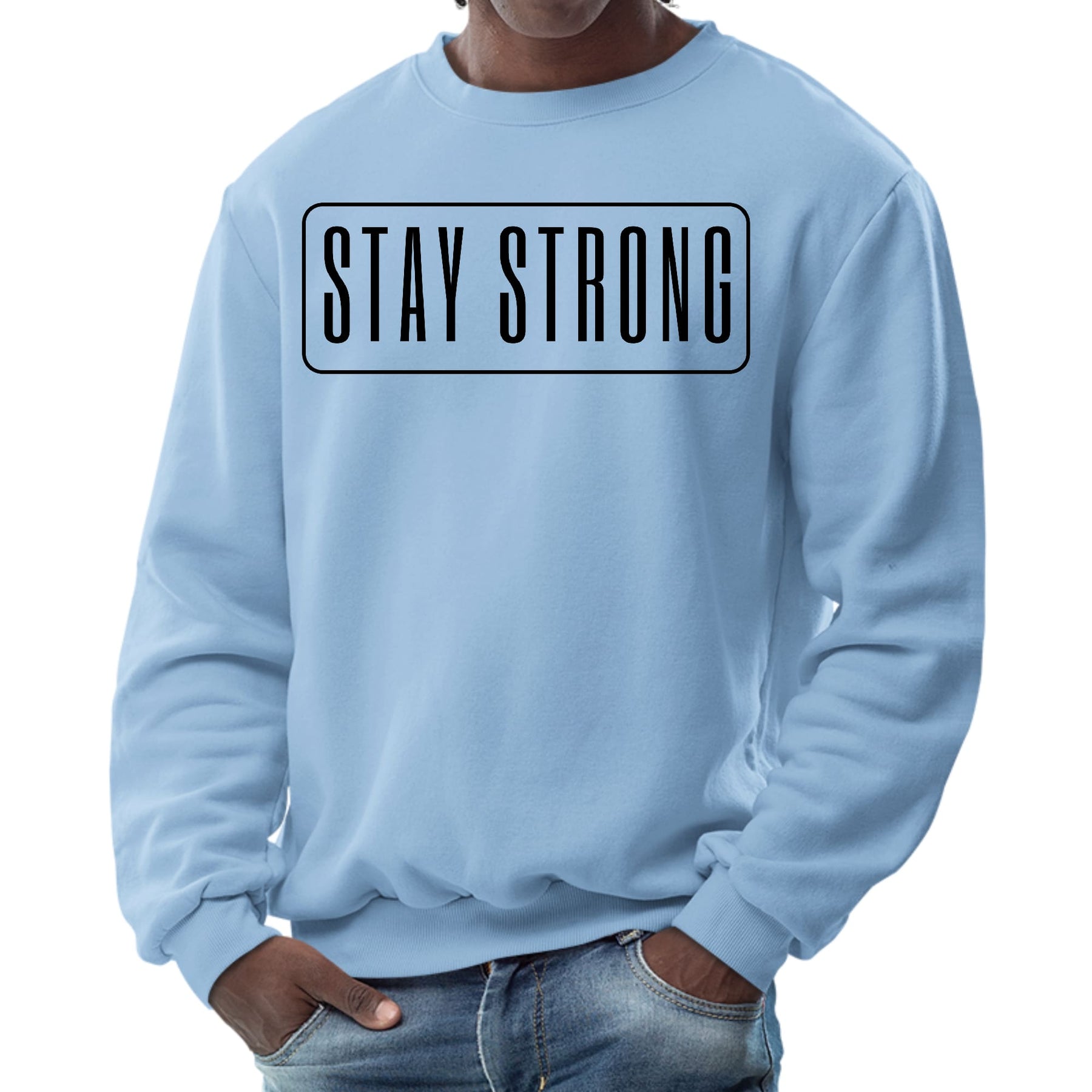 Mens Graphic Sweatshirt, Stay Strong Print. This crewneck sweatshirt exudes classic appeal with its comfortable pullover style and cozy fleece construction. Crafted from affordable cotton, this versatile crewneck offers a stylish sweatshirt design. The quality fabric ensures everyday casual comfort, making it a trendy and timeless option for daily wear. The soft-blend fleece design adds an extra layer of coziness, while the affordable price makes it an accessible choice for everyone. Whether you prefer a classic pullover sweatshirt or a versatile crewneck option, this sweatshirt caters to a variety of preferences, providing a staple for your wardrobe in a variety of colors. Suitable for everyone, this sweatshirt is the epitome of affordable and stylish everyday comfort.