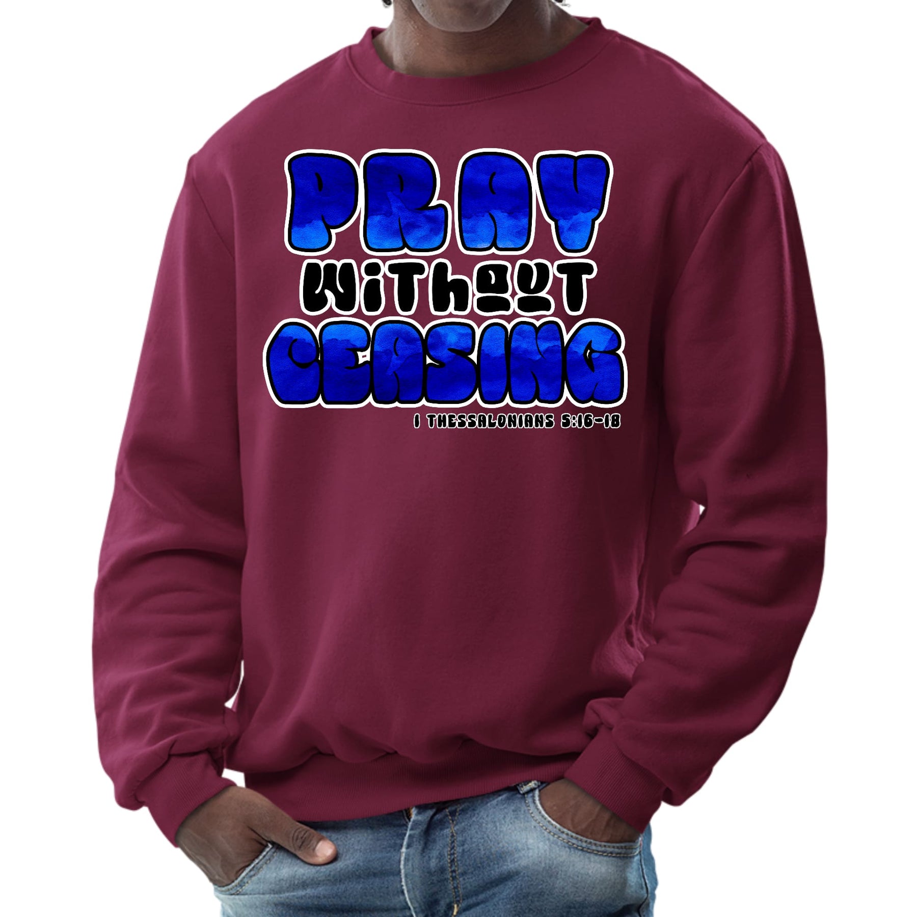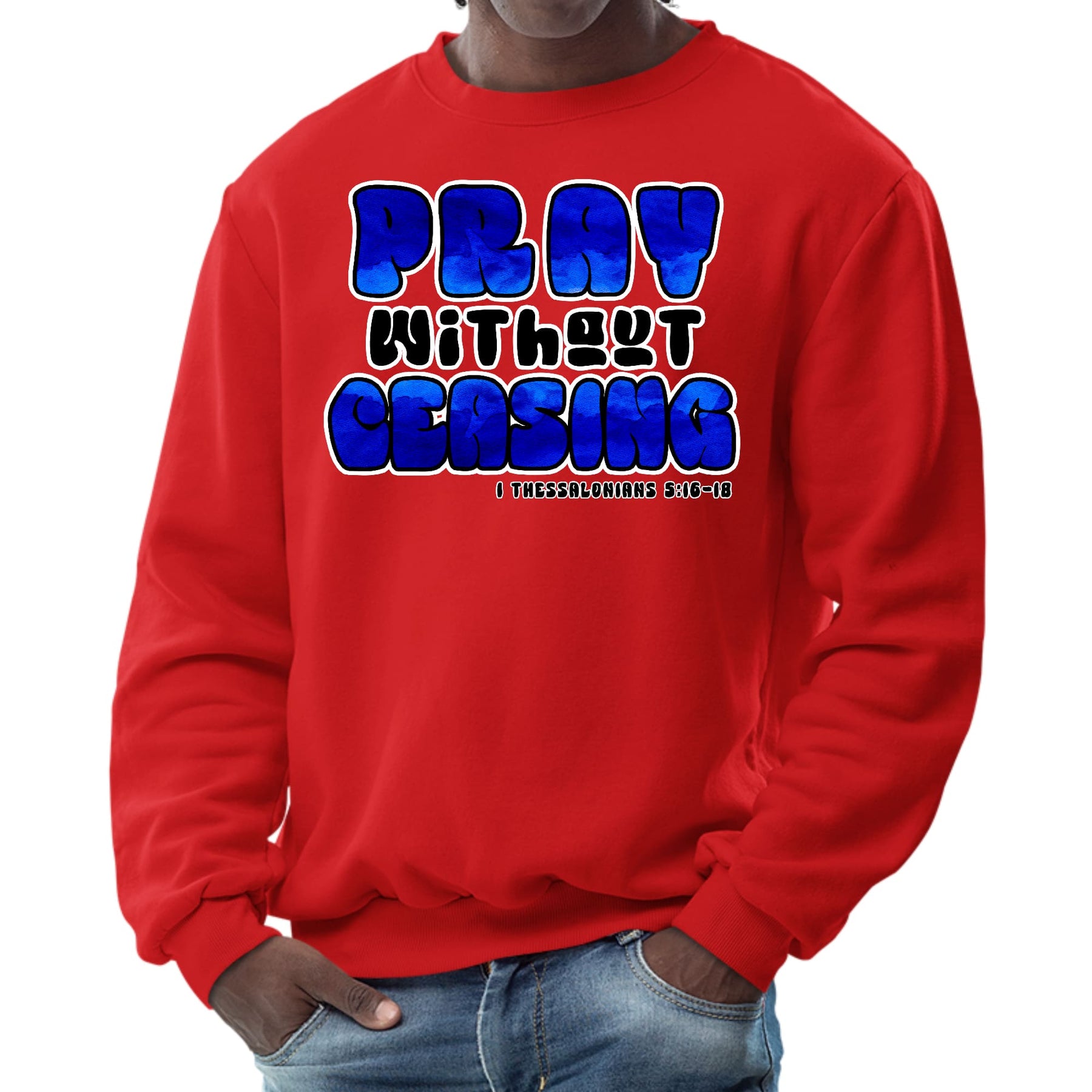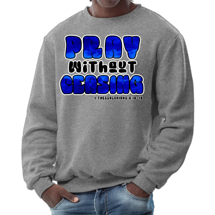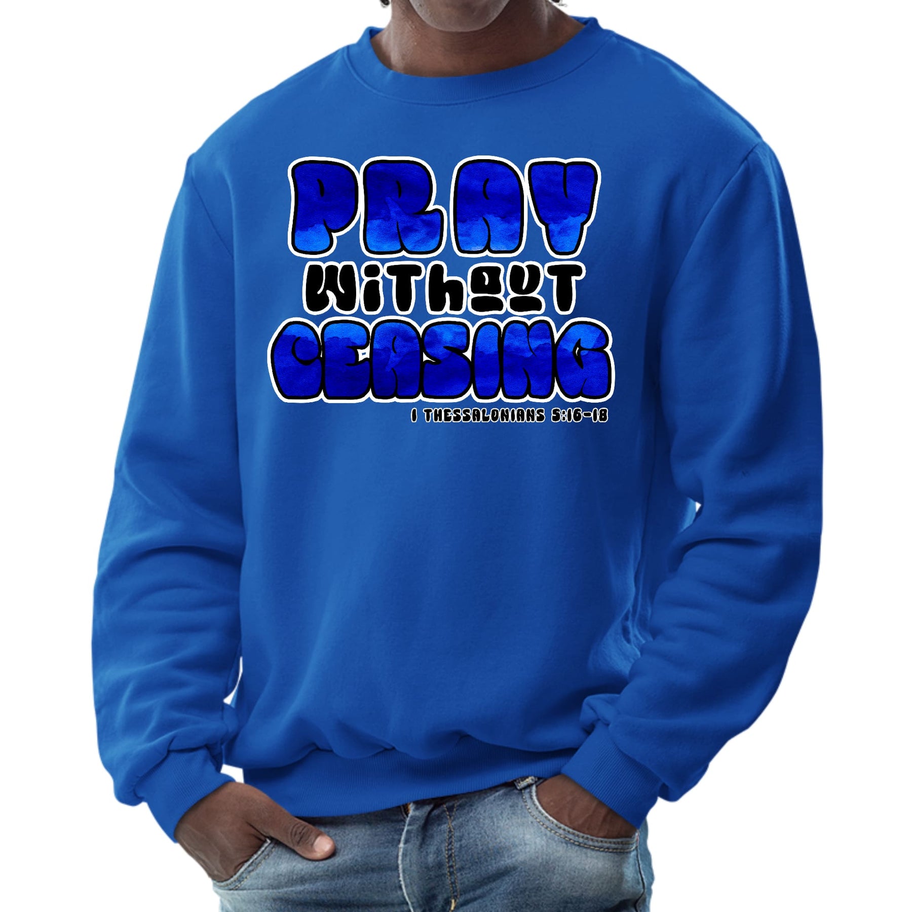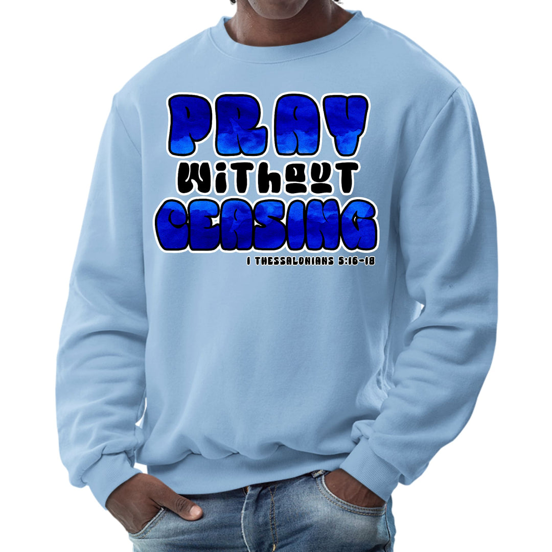 Mens Graphic Sweatshirt, Pray Without Ceasing, Inspirational Illustration. This crewneck sweatshirt exudes classic appeal with its comfortable pullover style and cozy fleece construction. Crafted from affordable cotton, this versatile crewneck offers a stylish sweatshirt design. The quality fabric ensures everyday casual comfort, making it a trendy and timeless option for daily wear. The soft-blend fleece design adds an extra layer of coziness, while the affordable price makes it an accessible choice for everyone. Whether you prefer a classic pullover sweatshirt or a versatile crewneck option, this sweatshirt caters to a variety of preferences, providing a staple for your wardrobe in a variety of colors. Suitable for everyone, this sweatshirt is the epitome of affordable and stylish everyday comfort.