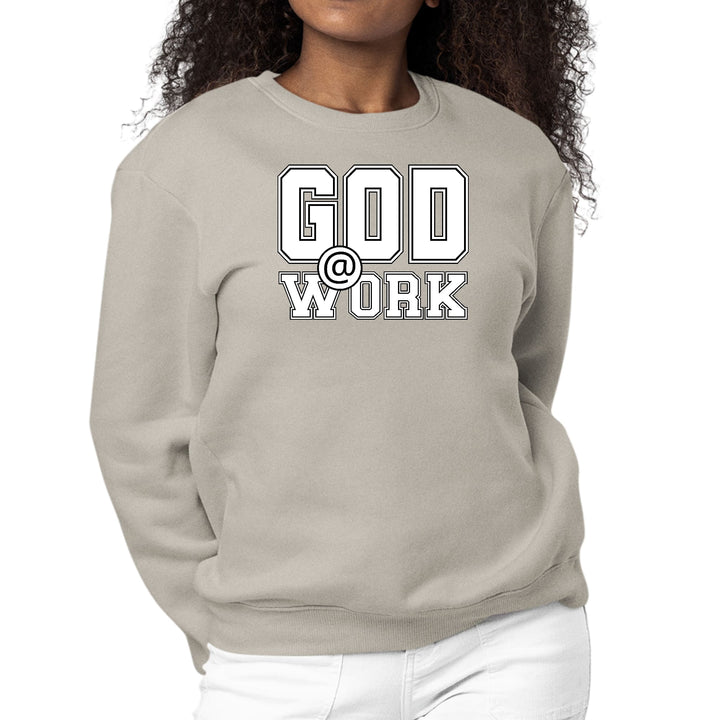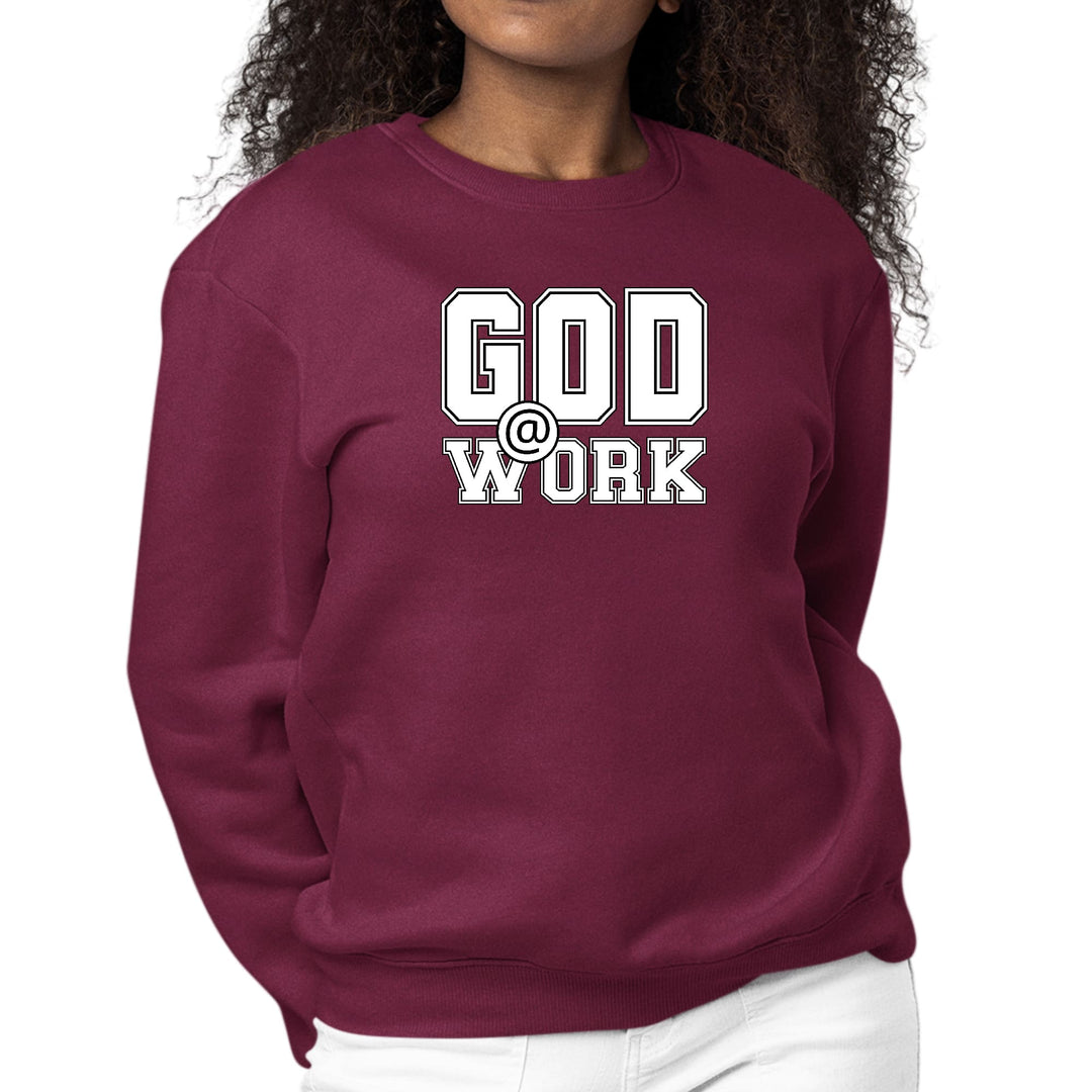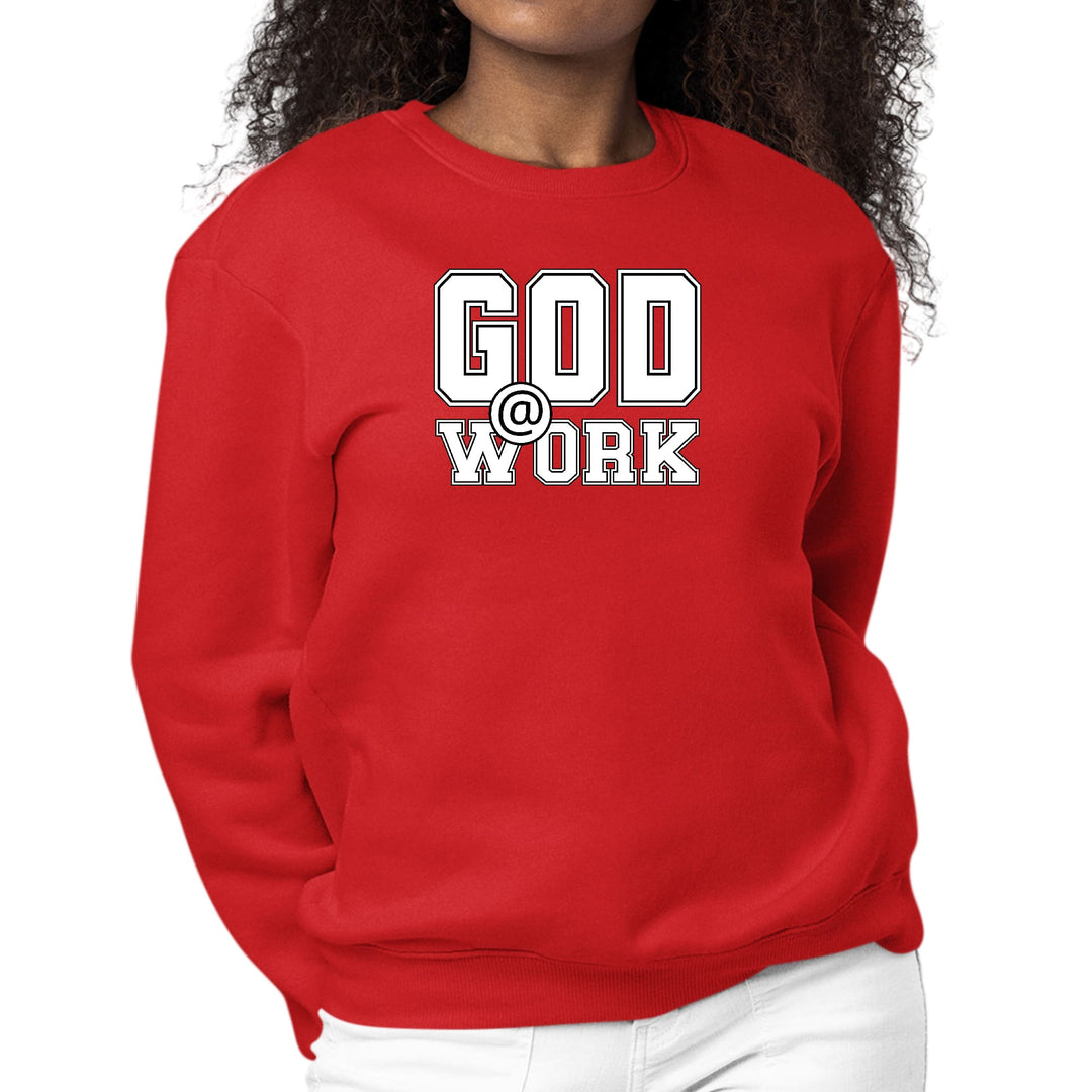 Womens Graphic Sweatshirt, God @ Work Print. This crewneck sweatshirt exudes classic appeal with its comfortable pullover style and cozy fleece construction. Crafted from affordable cotton, this versatile crewneck offers a stylish sweatshirt design. The quality fabric ensures everyday casual comfort, making it a trendy and timeless option for daily wear. The soft-blend fleece design adds an extra layer of coziness, while the affordable price makes it an accessible choice for everyone. Whether you prefer a classic pullover sweatshirt or a versatile crewneck option, this sweatshirt caters to a variety of preferences, providing a staple for your wardrobe in a variety of colors. Suitable for everyone, this sweatshirt is the epitome of affordable and stylish everyday comfort.