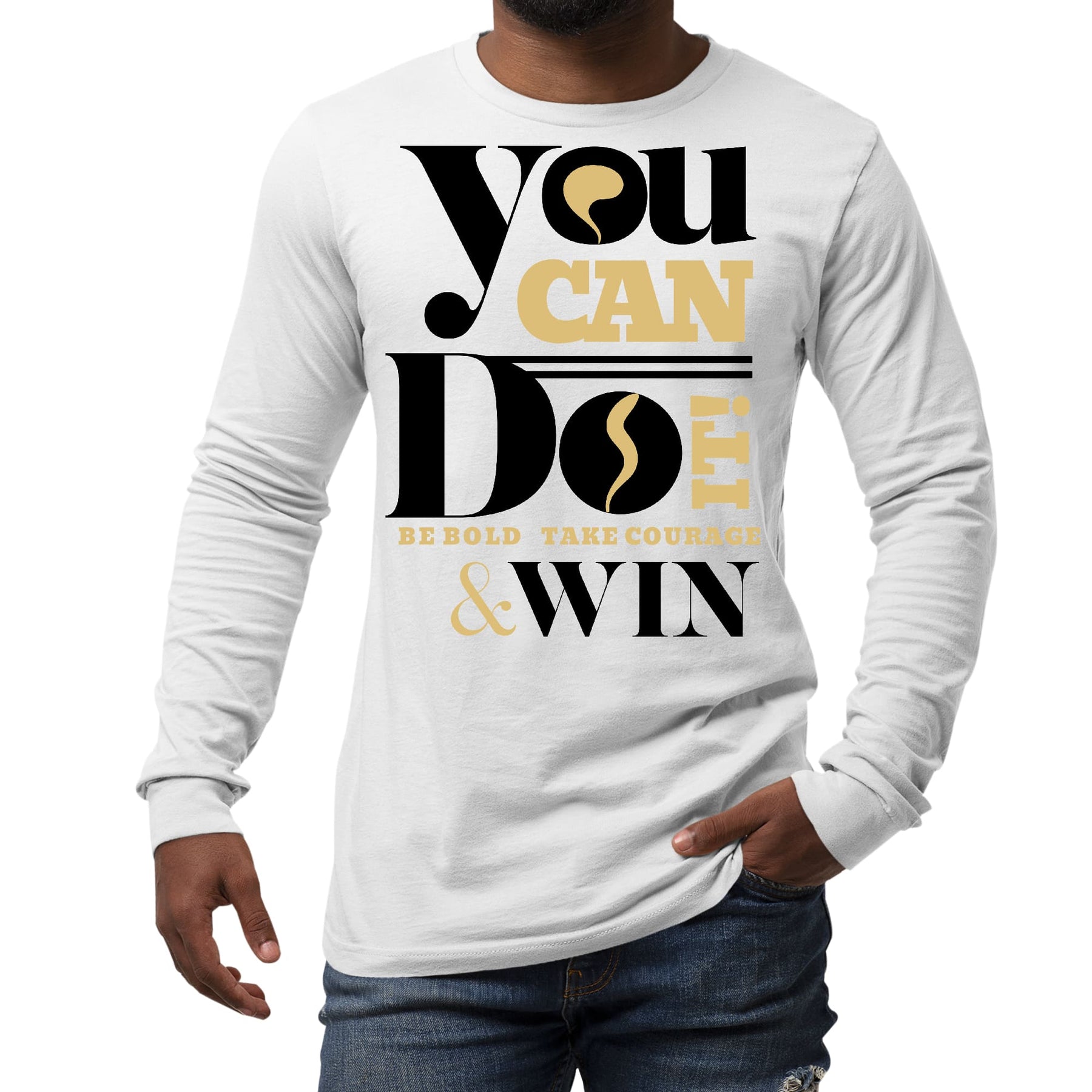 Mens Long Sleeve Graphic T-Shirt You Can Do It Be Bold Take Courage Win Illustration. Discover the versatility and style of this moisture wicking performance T-shirt. This unisex long sleeve t-shirt is designed to be a go-to choice in all seasons, whether it's the perfect fall shirt, a stylish option for spring, or a cozy companion in winter. Crafted from breathable fabric, it combines comfort and fashion effortlessly.