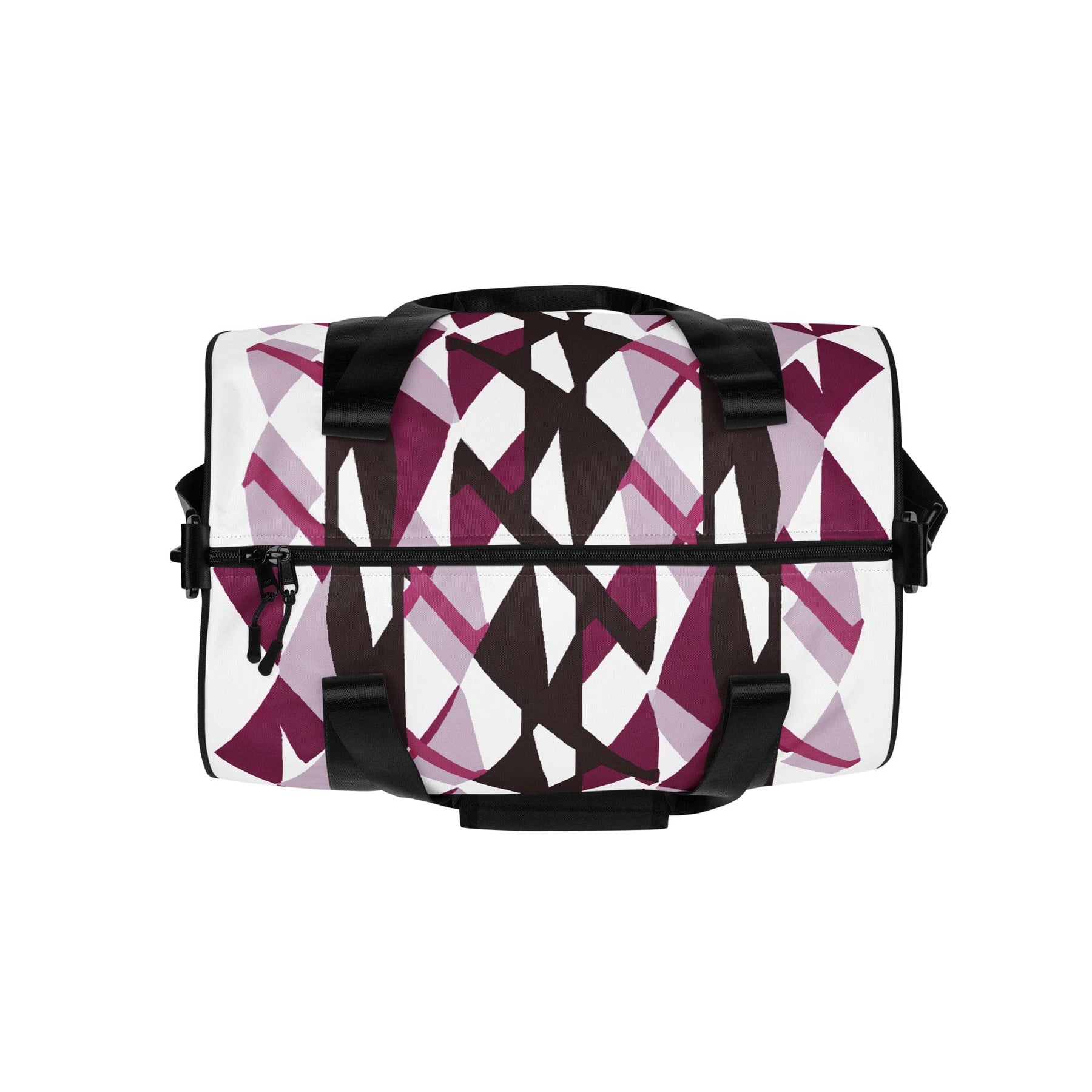 Crossbody Water-Resistant Travel Bag, Pink Mauve Pattern. Ready to get your fitness on? Add some punch to pumping iron with this bag. Made from 100% polyester and sturdy, water-resistant fabric, this bag is fun meets function. And it’s got pockets!