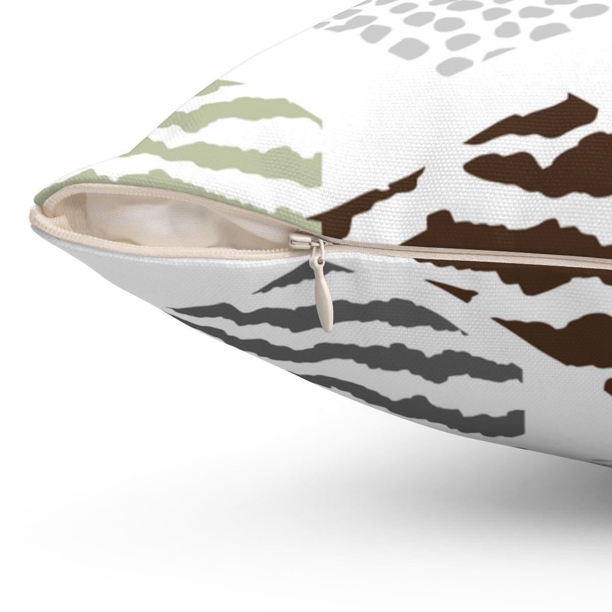 Decorative Throw Pillow Cover - Green Grey Brown Hexagon Print