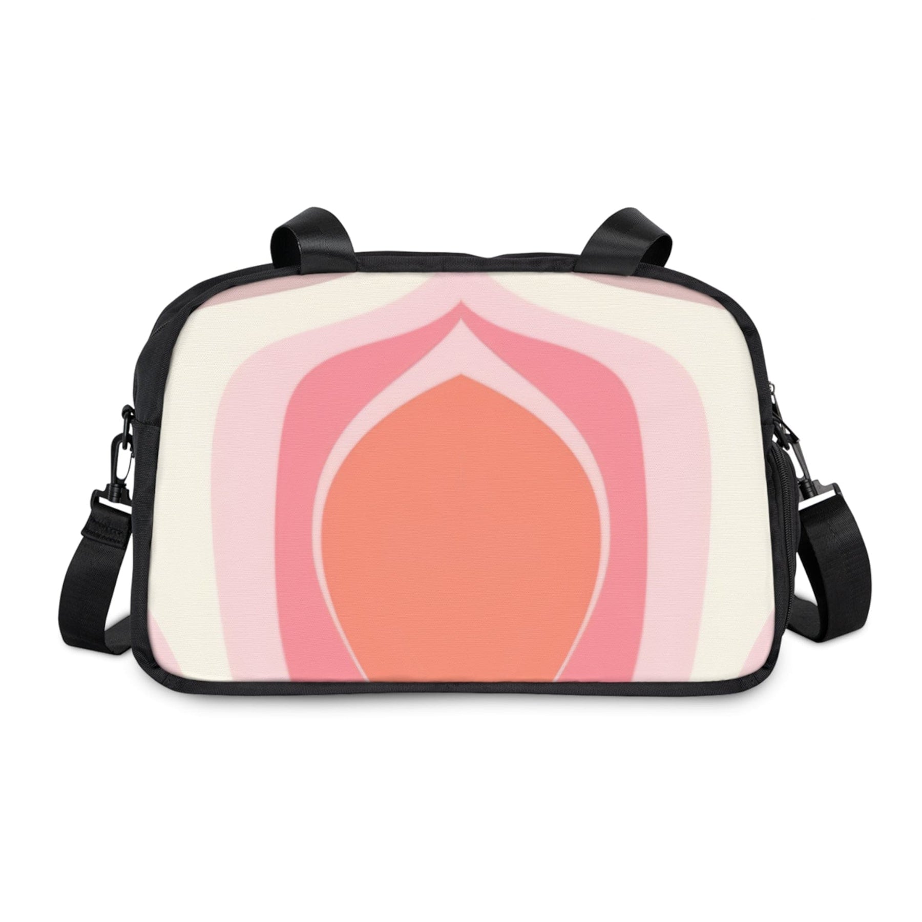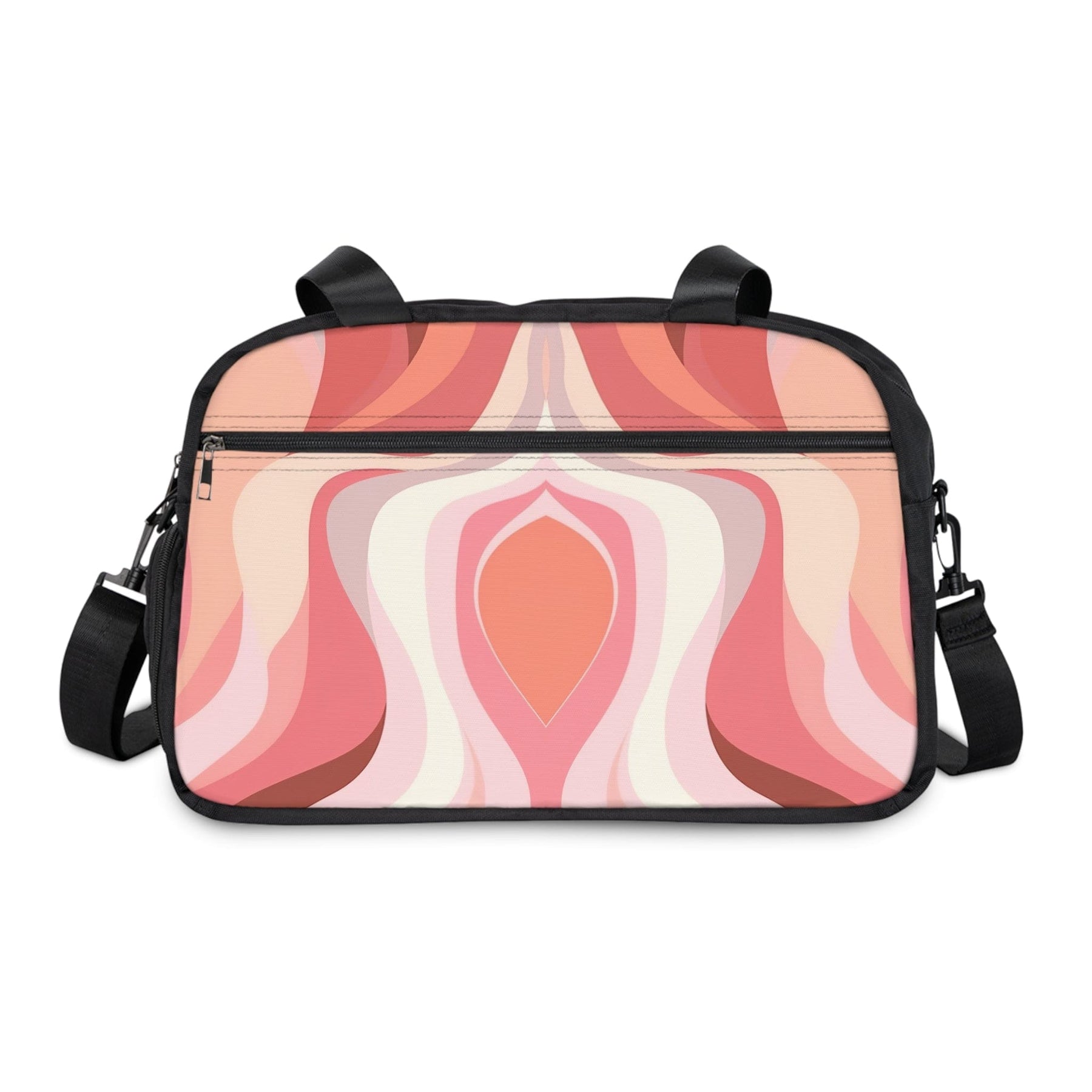 Travel Fitness Bag Pink White Boho Swirl Lines. Whether the day is all about sweating it out at the gym or enjoying a casual day out, this gym handbag is the perfect accessory to carry all your essentials with. Crafted from water-resistant nylon fabric, this travel fitness bag epitomizes durability and convenience. Engineered for active lifestyles, it boasts a resilient handle and an adjustable shoulder strap, ensuring effortless portability wherever your adventures take you. Designed to withstand the rigors of travel, its robust construction safeguards your fitness essentials from the elements. With ample storage space, organizing your gear is a breeze, allowing you to focus on your fitness journey without any hassle. This bag accommodates all your essentials, keeping them secure and easily accessible. Its sleek design exudes sophistication, making it a versatile accessory for both travel and everyday use. Whether you're a seasoned athlete or a novice gym-goer, this travel fitness bag ensures that you're always prepared to conquer your fitness goals, one step at a time.