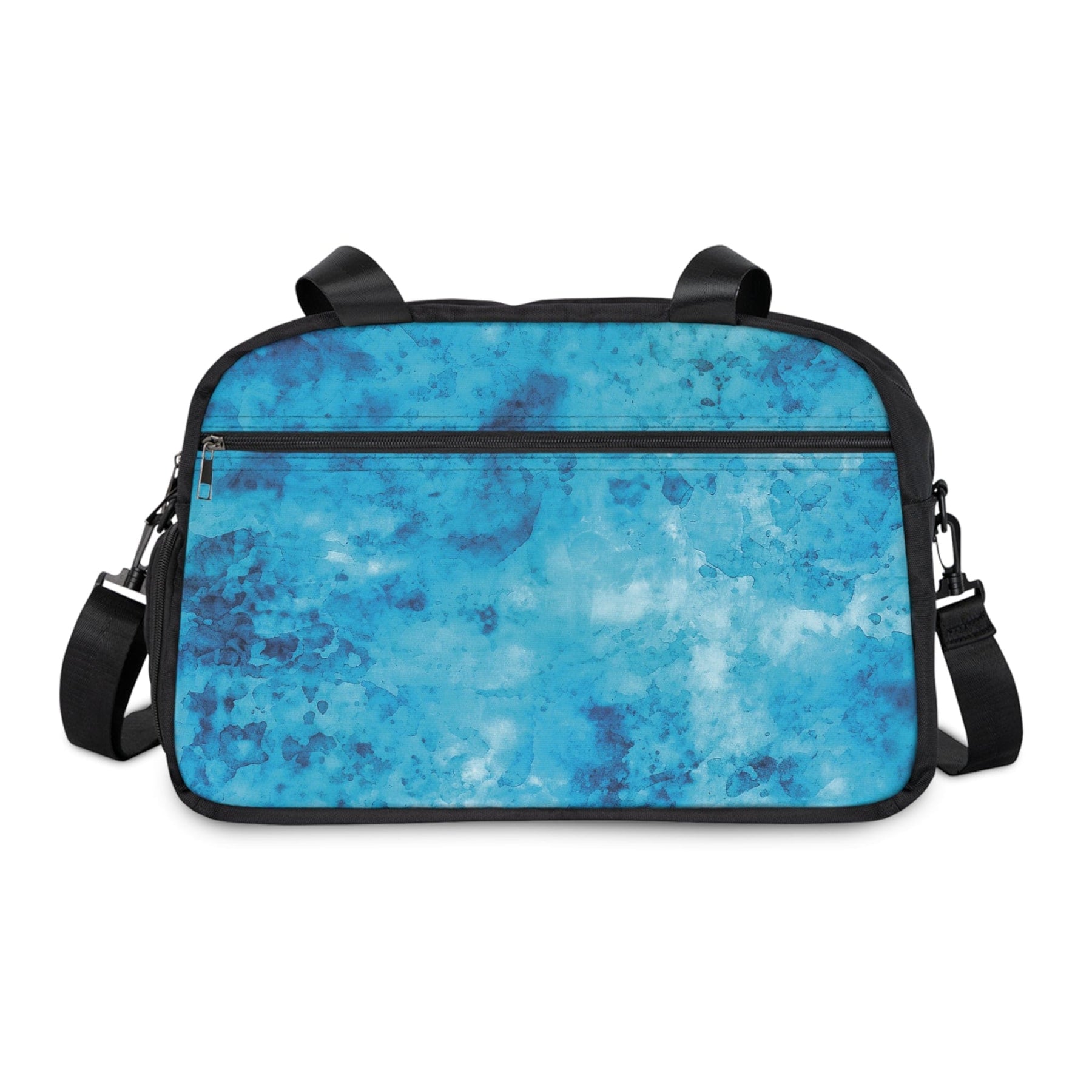 Travel Fitness Bag Blue Marble Print. Whether the day is all about sweating it out at the gym or enjoying a casual day out, this gym handbag is the perfect accessory to carry all your essentials with. Crafted from water-resistant nylon fabric, this travel fitness bag epitomizes durability and convenience. Engineered for active lifestyles, it boasts a resilient handle and an adjustable shoulder strap, ensuring effortless portability wherever your adventures take you. Designed to withstand the rigors of travel, its robust construction safeguards your fitness essentials from the elements. With ample storage space, organizing your gear is a breeze, allowing you to focus on your fitness journey without any hassle. This bag accommodates all your essentials, keeping them secure and easily accessible. Its sleek design exudes sophistication, making it a versatile accessory for both travel and everyday use. Whether you're a seasoned athlete or a novice gym-goer, this travel fitness bag ensures that you're always prepared to conquer your fitness goals, one step at a time.