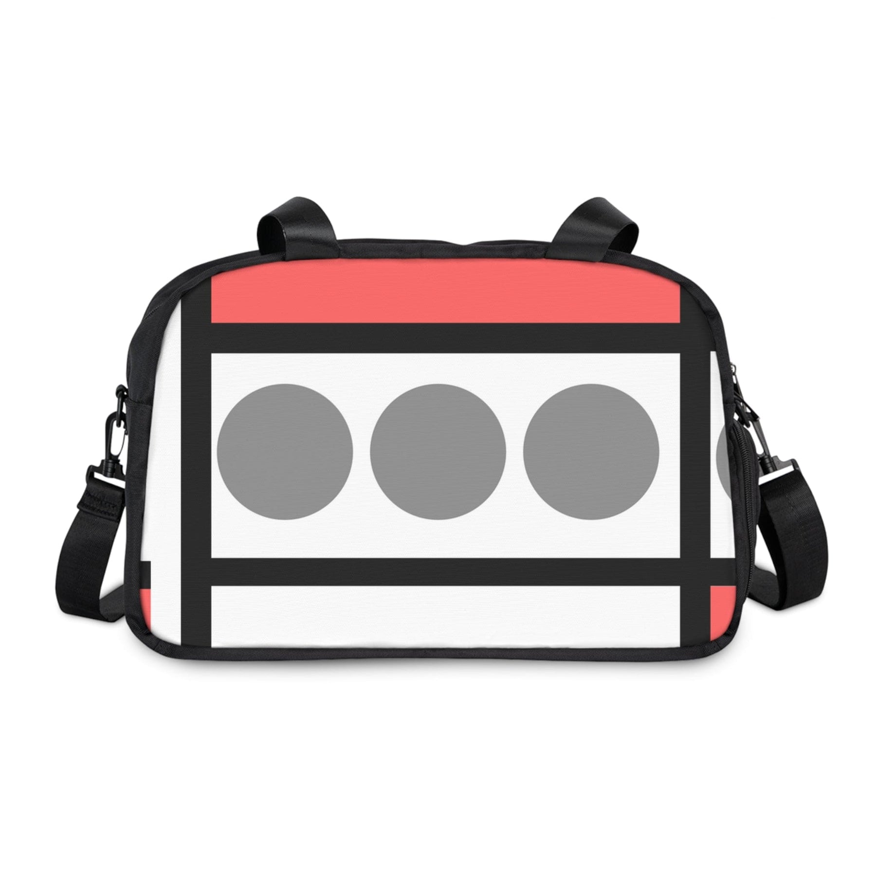 Travel Fitness Bag Pale Red Print. Whether the day is all about sweating it out at the gym or enjoying a casual day out, this gym handbag is the perfect accessory to carry all your essentials with. Crafted from water-resistant nylon fabric, this travel fitness bag epitomizes durability and convenience. Engineered for active lifestyles, it boasts a resilient handle and an adjustable shoulder strap, ensuring effortless portability wherever your adventures take you. Designed to withstand the rigors of travel, its robust construction safeguards your fitness essentials from the elements. With ample storage space, organizing your gear is a breeze, allowing you to focus on your fitness journey without any hassle. This bag accommodates all your essentials, keeping them secure and easily accessible. Its sleek design exudes sophistication, making it a versatile accessory for both travel and everyday use. Whether you're a seasoned athlete or a novice gym-goer, this travel fitness bag ensures that you're always prepared to conquer your fitness goals, one step at a time.