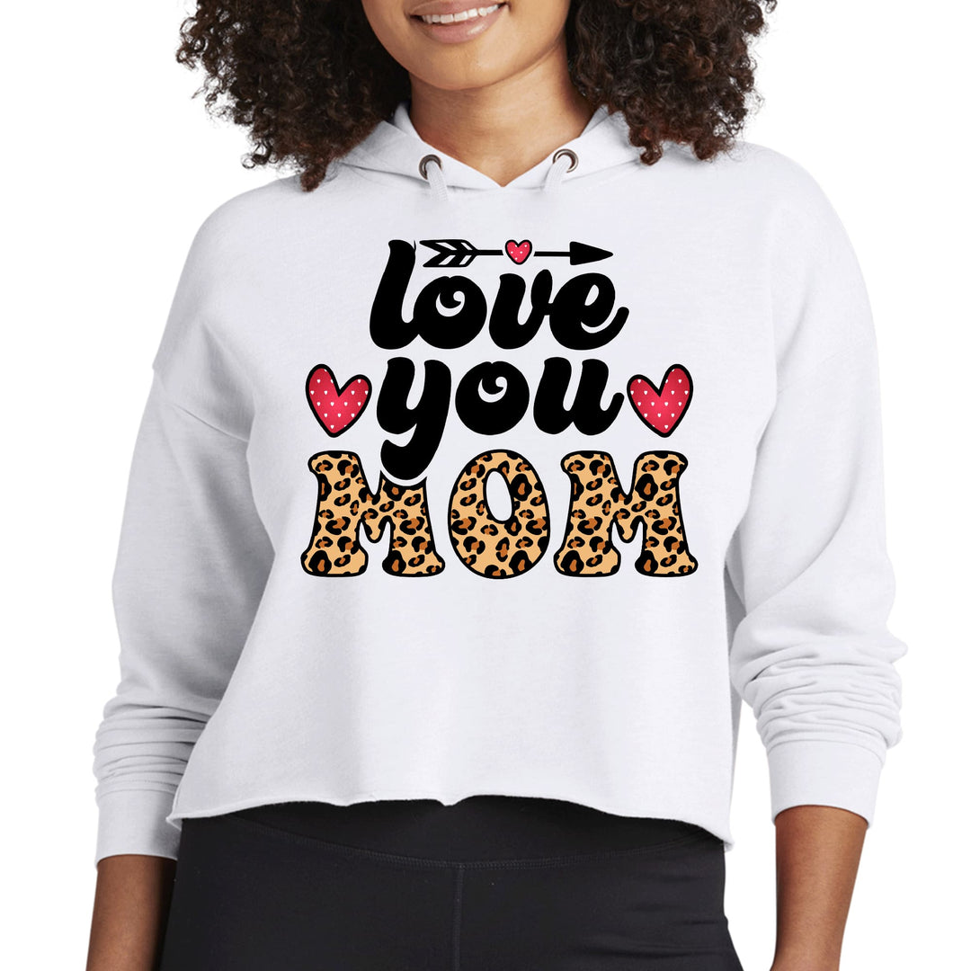 Womens Cropped Hoodie Love you Mom Leopard Print