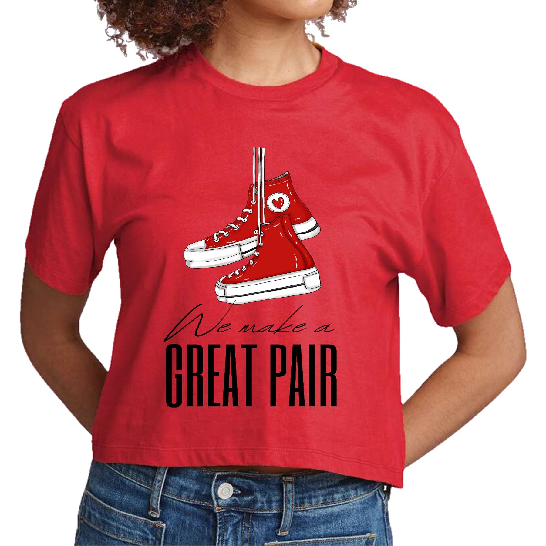 Womens Cropped Graphic T-Shirt, Say It Soul, We Make A Great Pair. This t-shirt is crafted with the imaginative and creative individual in mind, offering a dynamic style for those who appreciate unique designs. Tailored for creative personalities, this tee features a stylish print that stands out, making a bold and expressive statement. With its edgy graphics and modern design, it captures the essence of contemporary fashion while providing comfort for everyday wear. The tee effortlessly merges casual and artistic elements, making it an ideal choice for those who seek to infuse their wardrobe with a touch of originality. Perfect for individuals who embrace their creativity, this graphic T-shirt serves as a canvas for self-expression, allowing wearers to showcase their unique personalities through fashion.