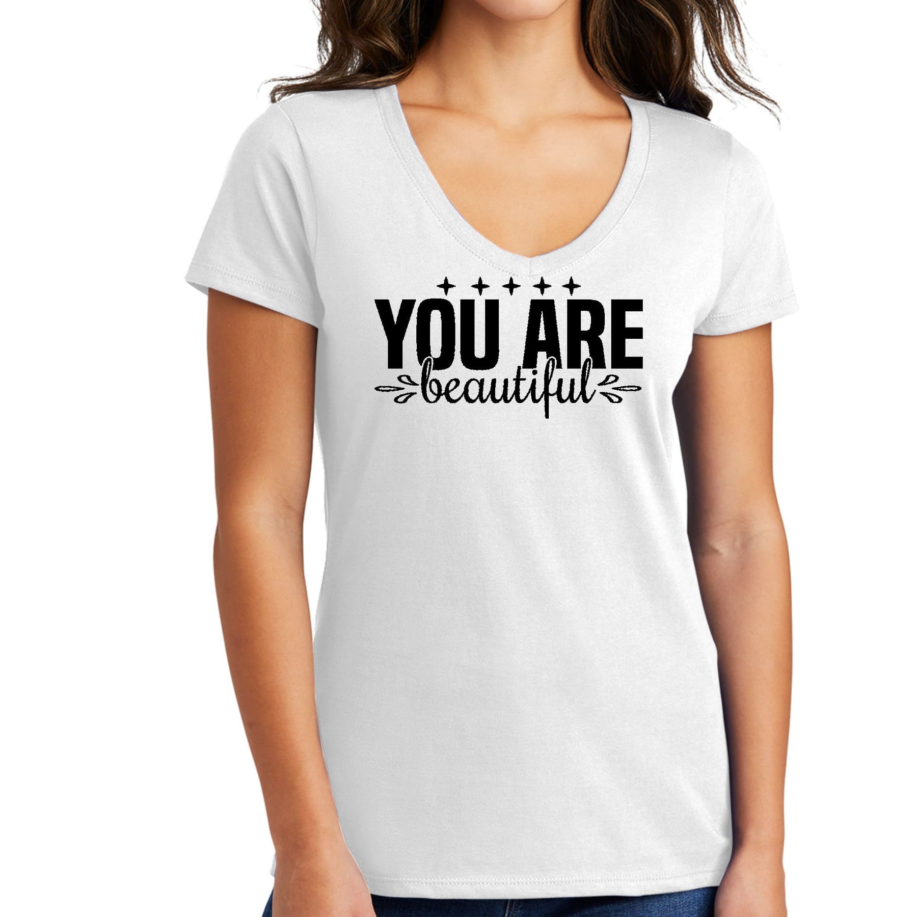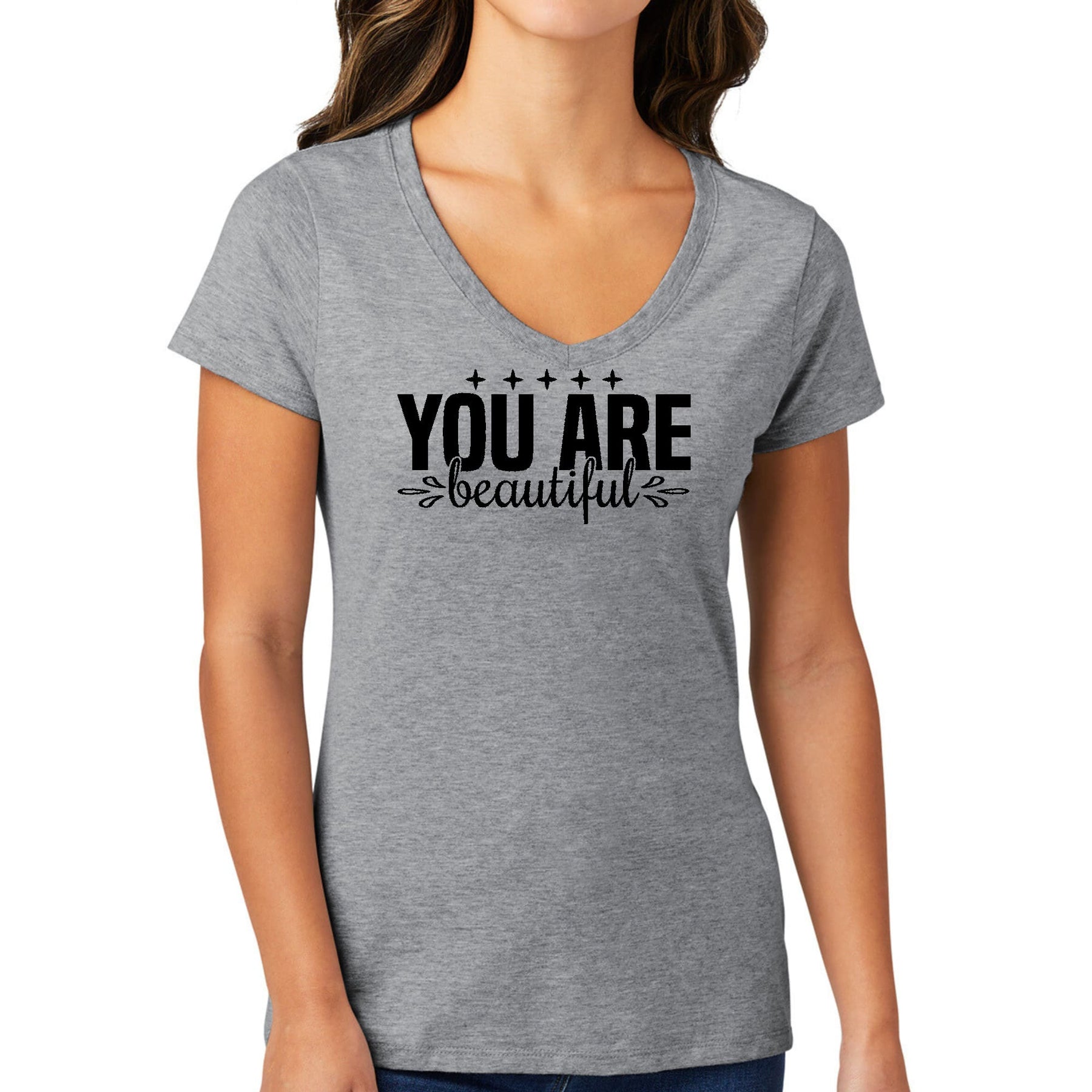 Womens V-neck Graphic T-shirt - you are Beautiful - Inspiration