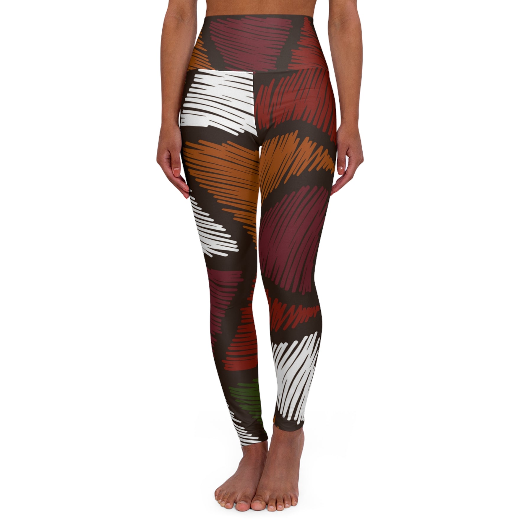Womens High-Waist Fitness Legging Yoga Pants, Red Green Geometric Lines. Our women's fitness leggings are meticulously crafted to elevate your workout experience. Designed with a high-waisted silhouette for enhanced support and comfort, these leggings feature moisture-wicking and breathable fabric, ensuring you stay cool and dry throughout your most intense sessions. With a seamless design and sculpting technology, they offer a sleek and flattering fit, accentuating your natural curves while providing unrestricted movement. The quick-dry technology and squat-proof construction guarantee confidence in every move, while mesh paneling and reflective detailing add stylish accents and enhance visibility during outdoor activities.