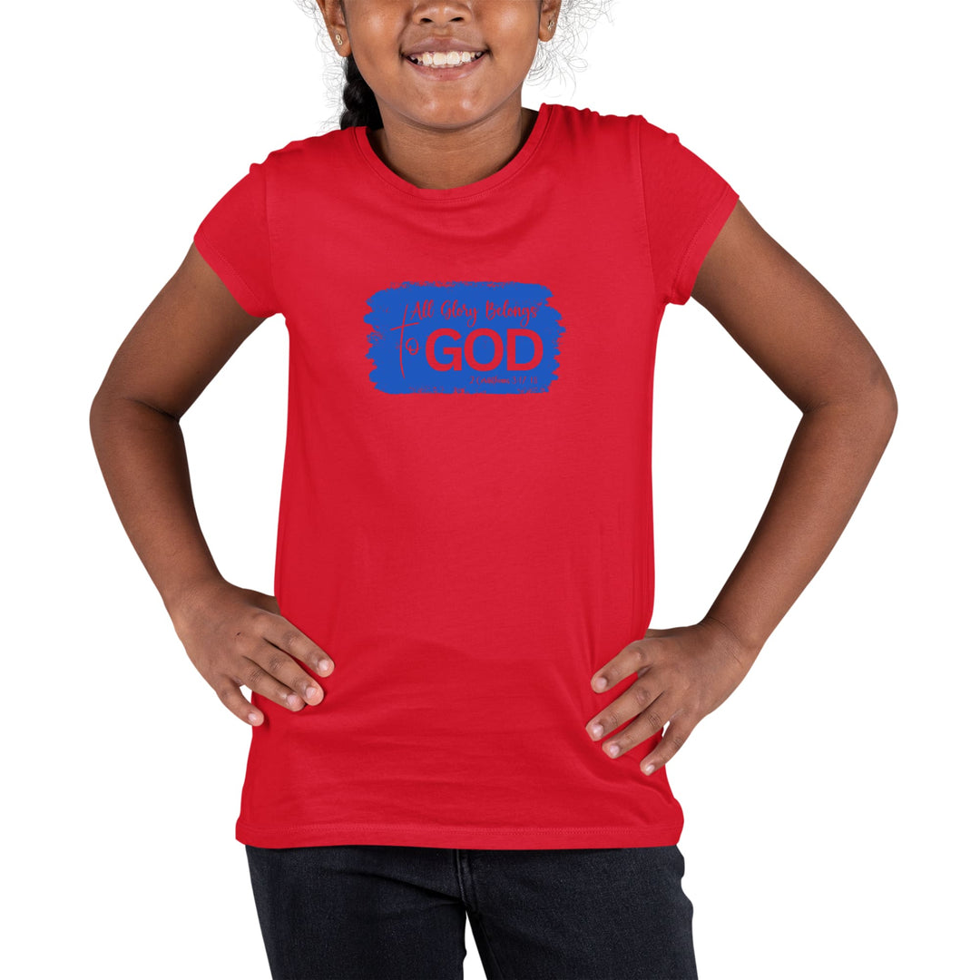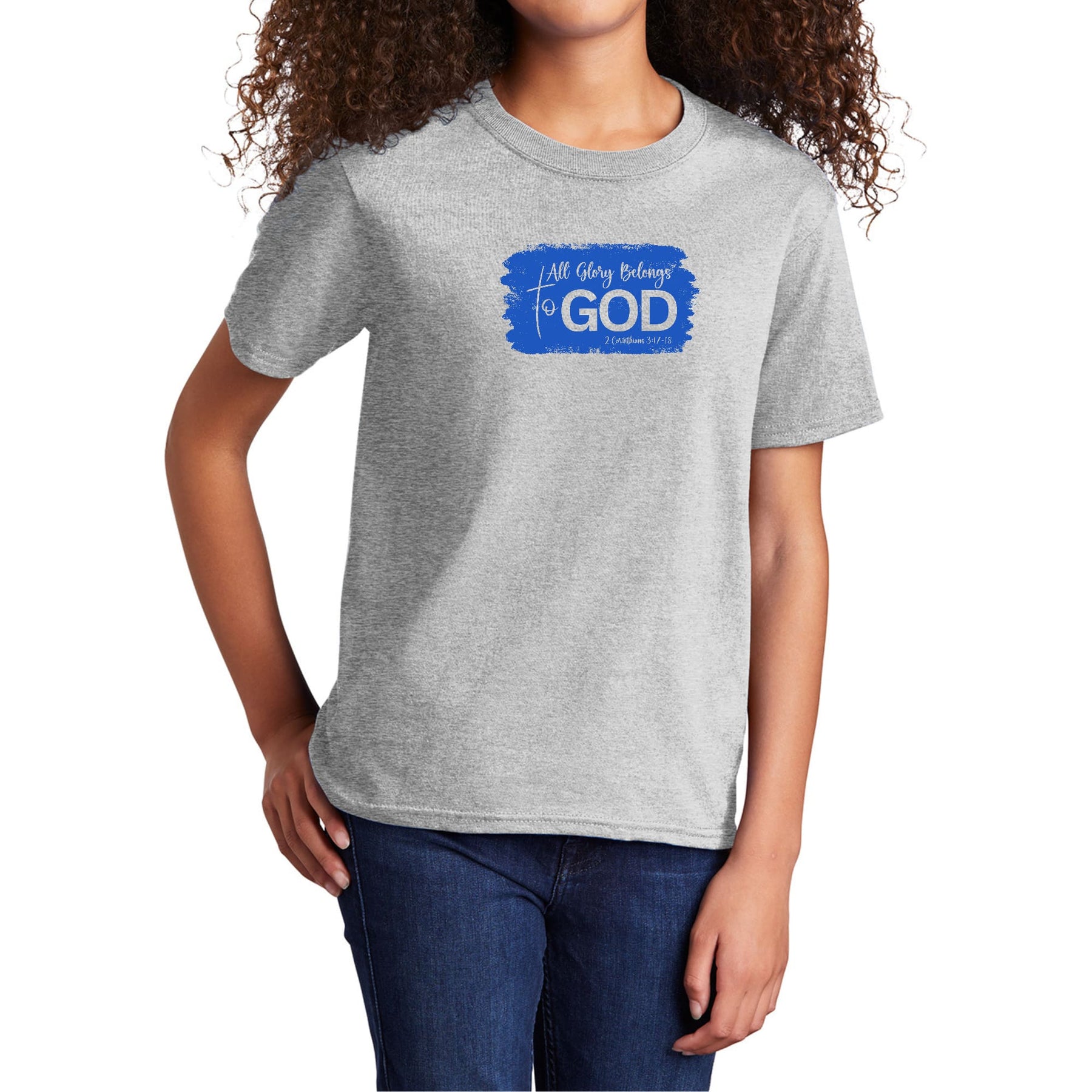 Youth Short Sleeve Graphic T-Shirt All Glory Belongs To God Christian Illustration Royal. This youth tee is super comfy. Made with preshrunk cotton, which means the shirt retains its softness and size after being washed.