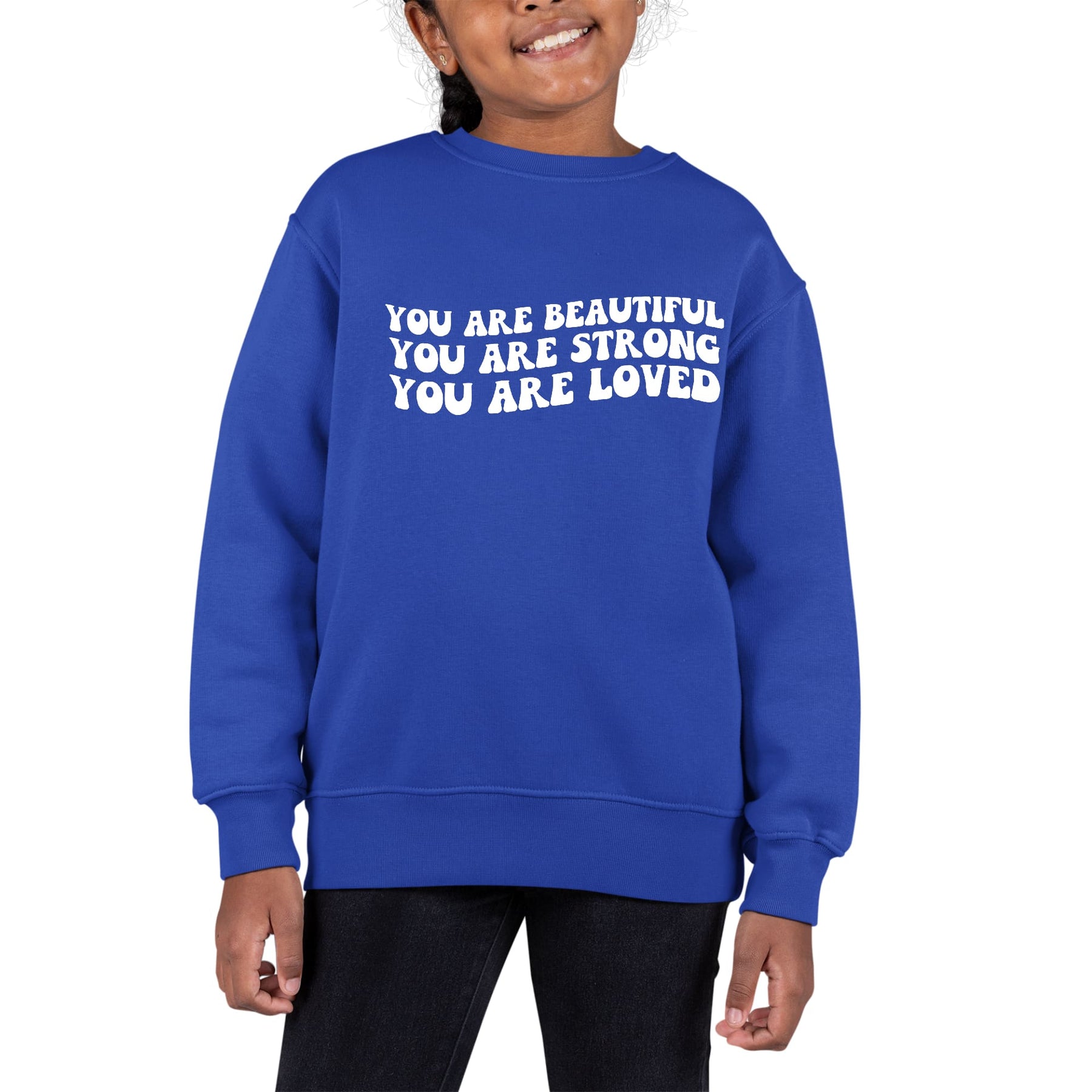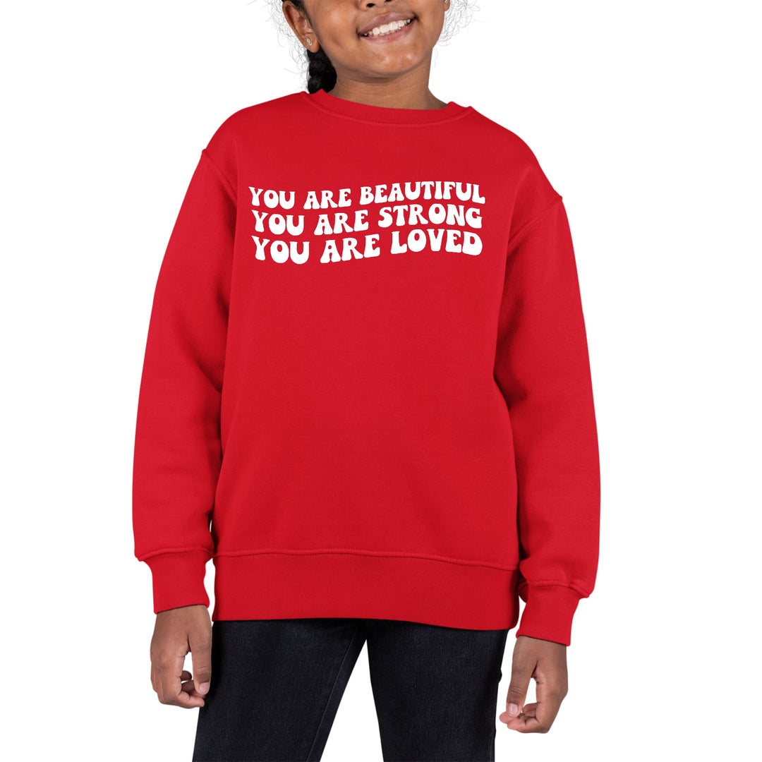 Youth Graphic Sweatshirt you are Beautiful Strong Loved Inspiration