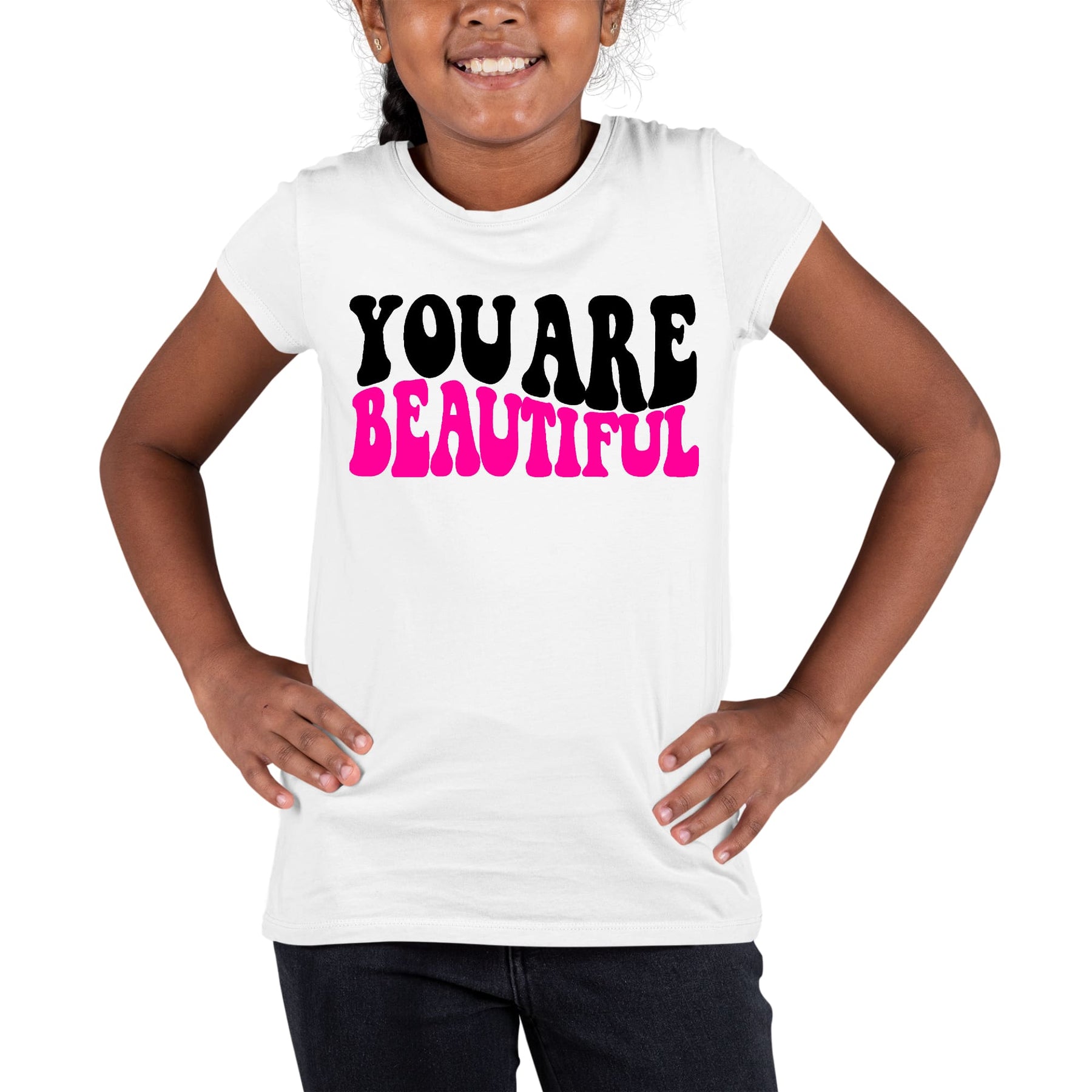 Girls T-shirt you are Beautiful Retro Wavy Pink Black Inspiration