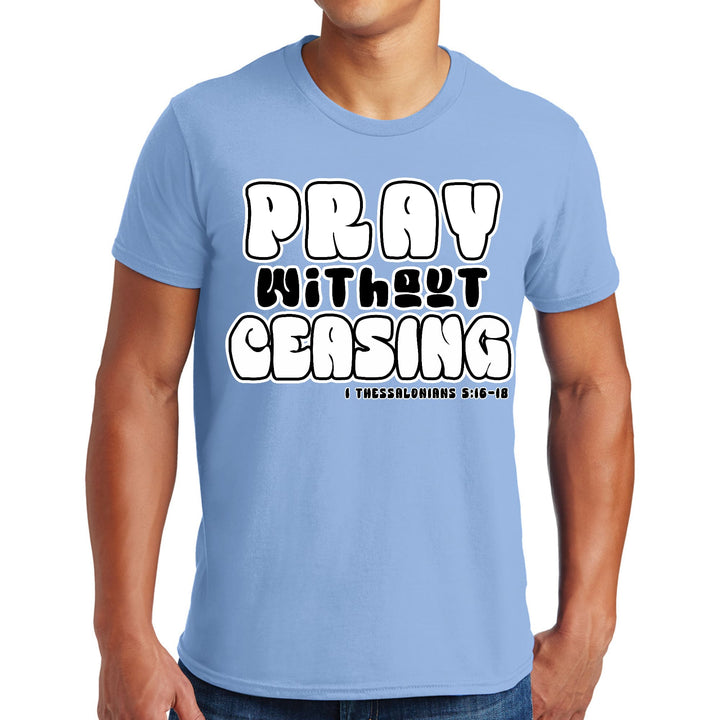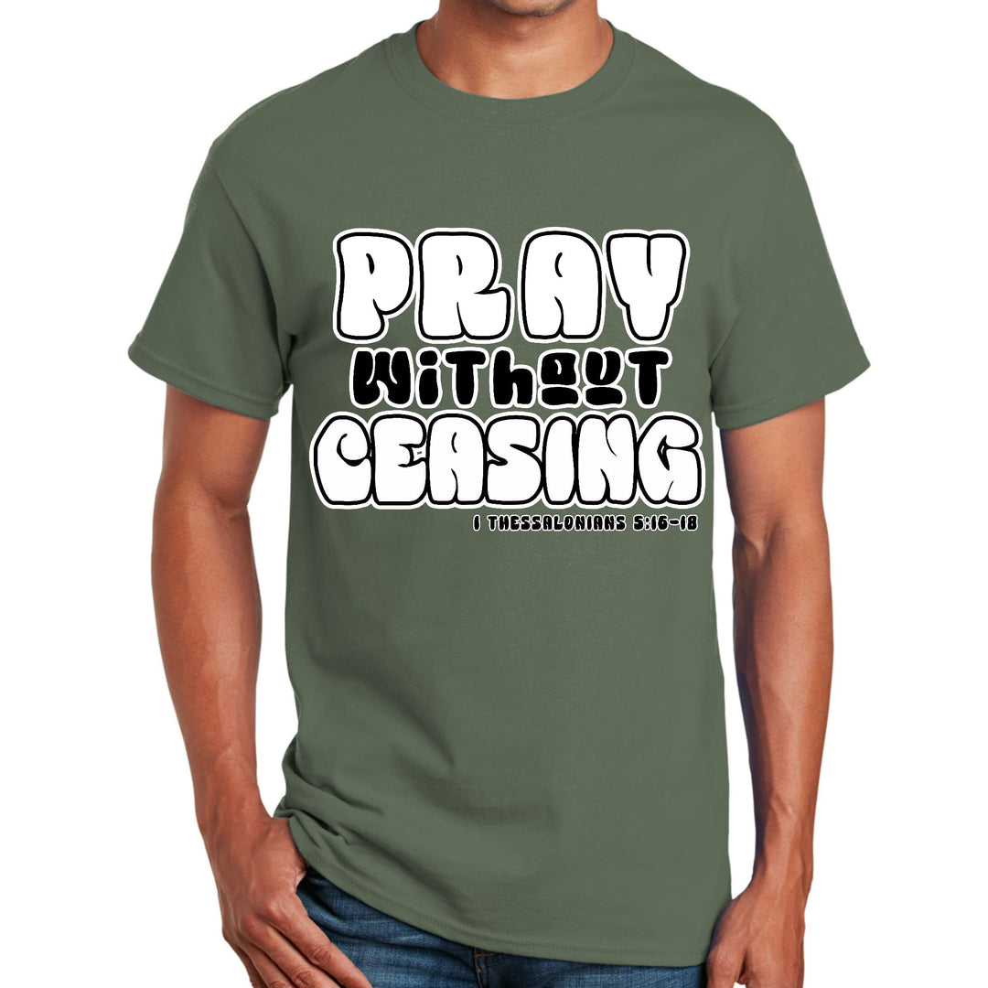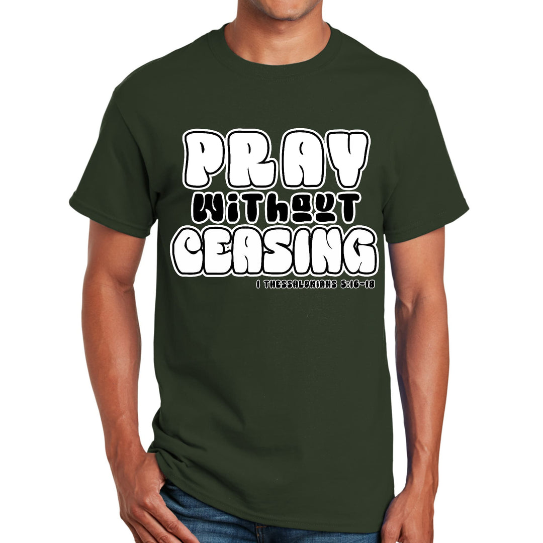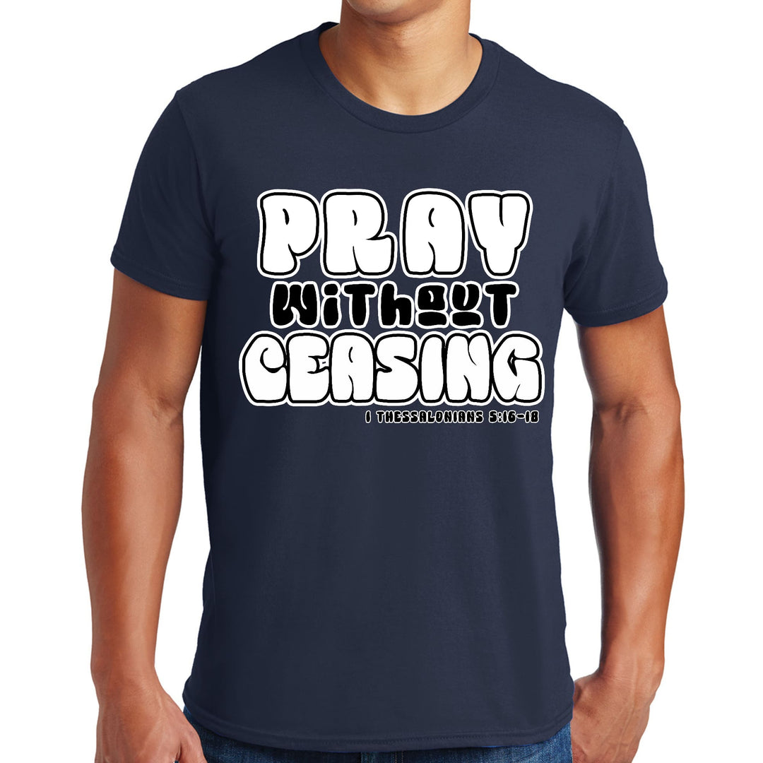 Mens T-shirt Pray Without Ceasing Black and White Christian