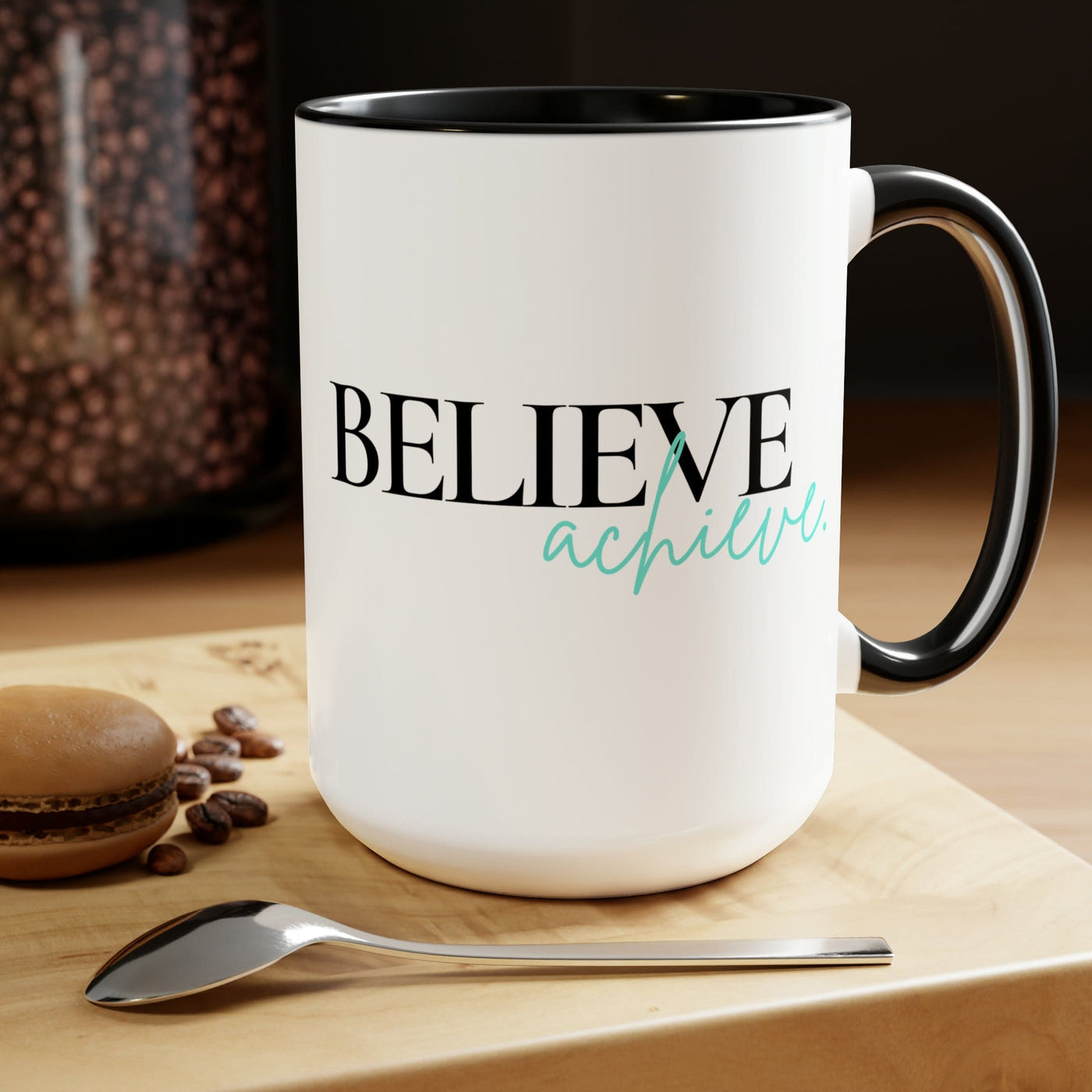 Ceramic Coffee Mug 15oz - Believe and Achieve - Inspirational Motivation