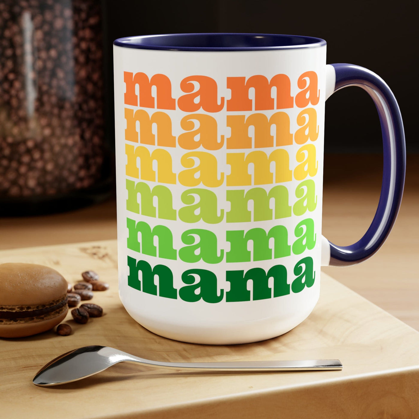 MAMA Celebrating Mothers Ceramic Coffee Mug. Warm-up with a nice cuppa out of this two-tone accent ceramic coffee mug. This mug is perfect for your morning cup of coffee, tea, hot cocoa, or any other hot beverage. It's also great for cold beverages! The ceramic mug is microwave and dishwasher safe. It’s BPA and Lead-free, and made of durable ceramic in 15-ounce size.