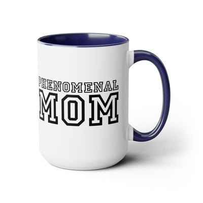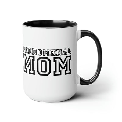 Phenomenal Mom A Heartfelt Gift For Mothers, Black Ceramic Coffee Mug. Warm-up with a nice cuppa out of this two-tone accent ceramic coffee mug. This mug is perfect for your morning cup of coffee, tea, hot cocoa, or any other hot beverage. It's also great for cold beverages! The ceramic mug is microwave and dishwasher safe. It’s BPA and Lead-free, and made of durable ceramic in 15-ounce size.
