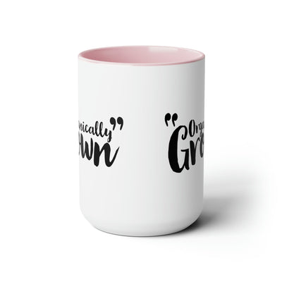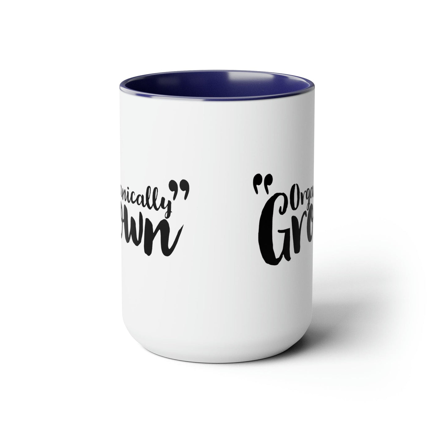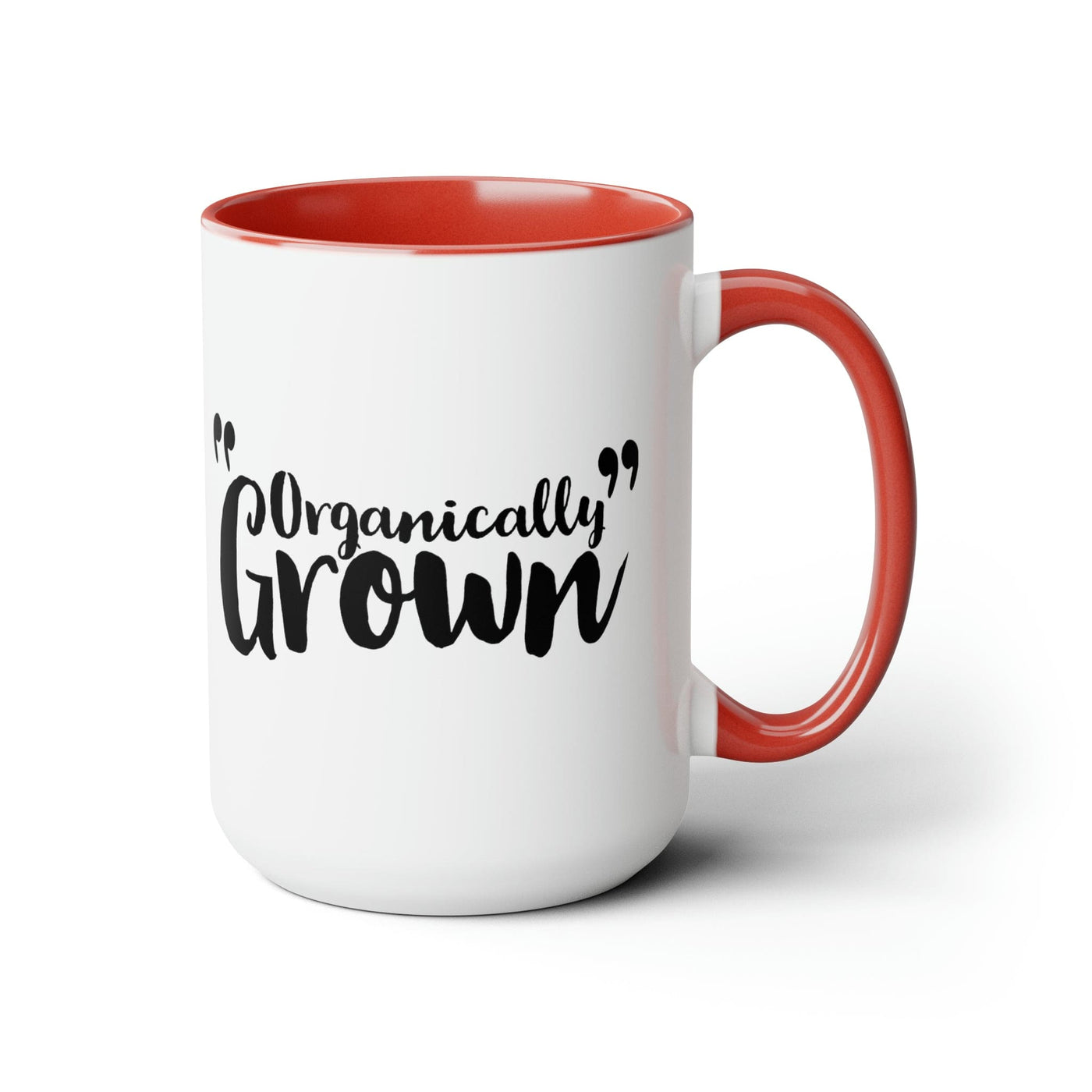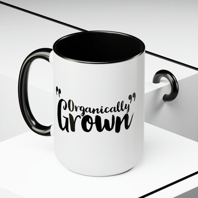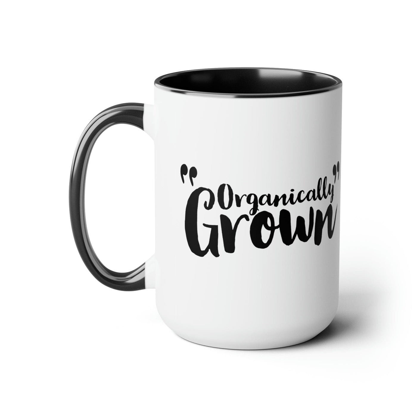 Organically Grown - Affirmation Inspiration - Black Ceramic Coffee Mug. Warm-up with a nice cuppa out of this two-tone accent ceramic coffee mug. This mug is perfect for your morning cup of coffee, tea, hot cocoa, or any other hot beverage. It's also great for cold beverages! The ceramic mug is microwave and dishwasher safe. It’s BPA and Lead-free, and made of durable ceramic in 15-ounce size.
