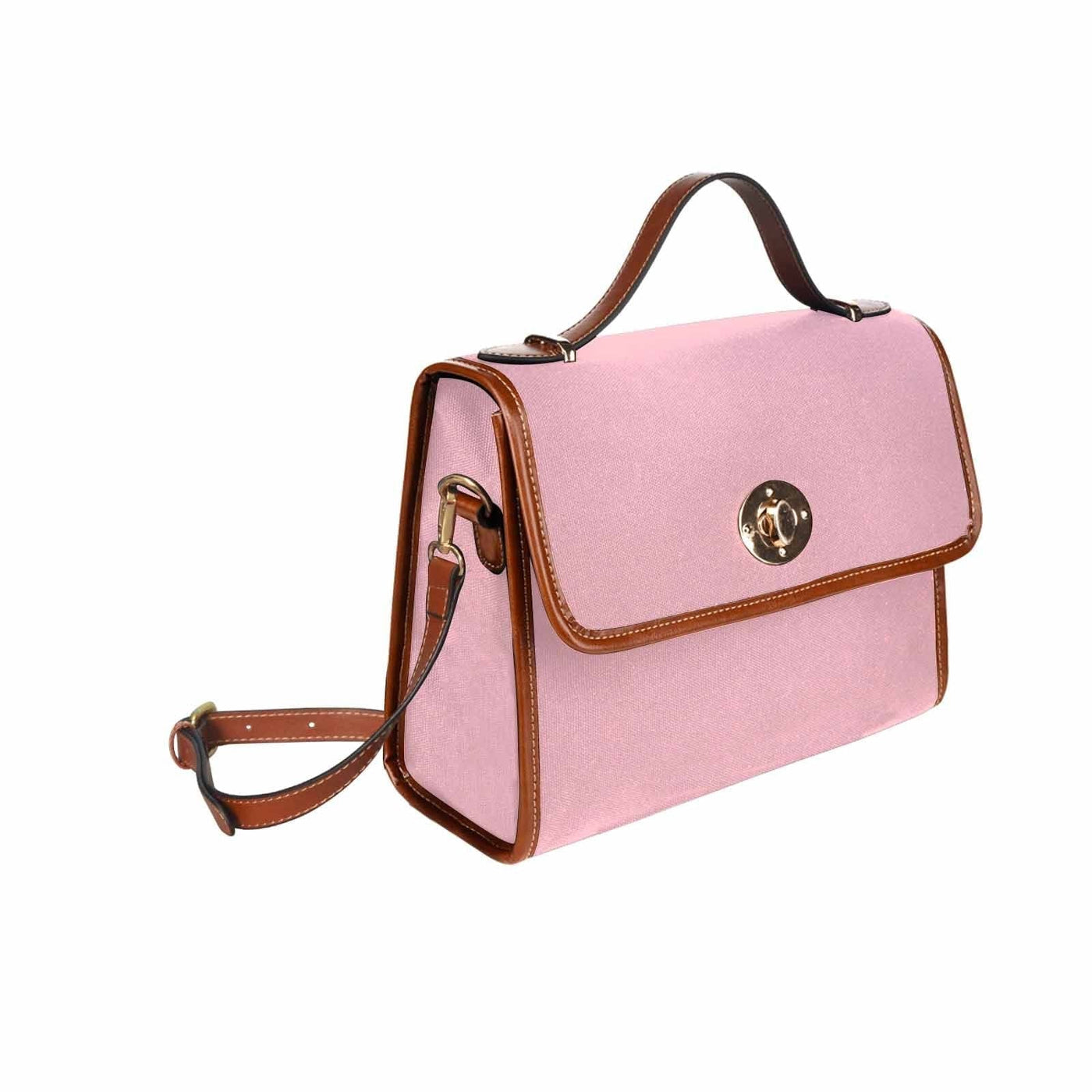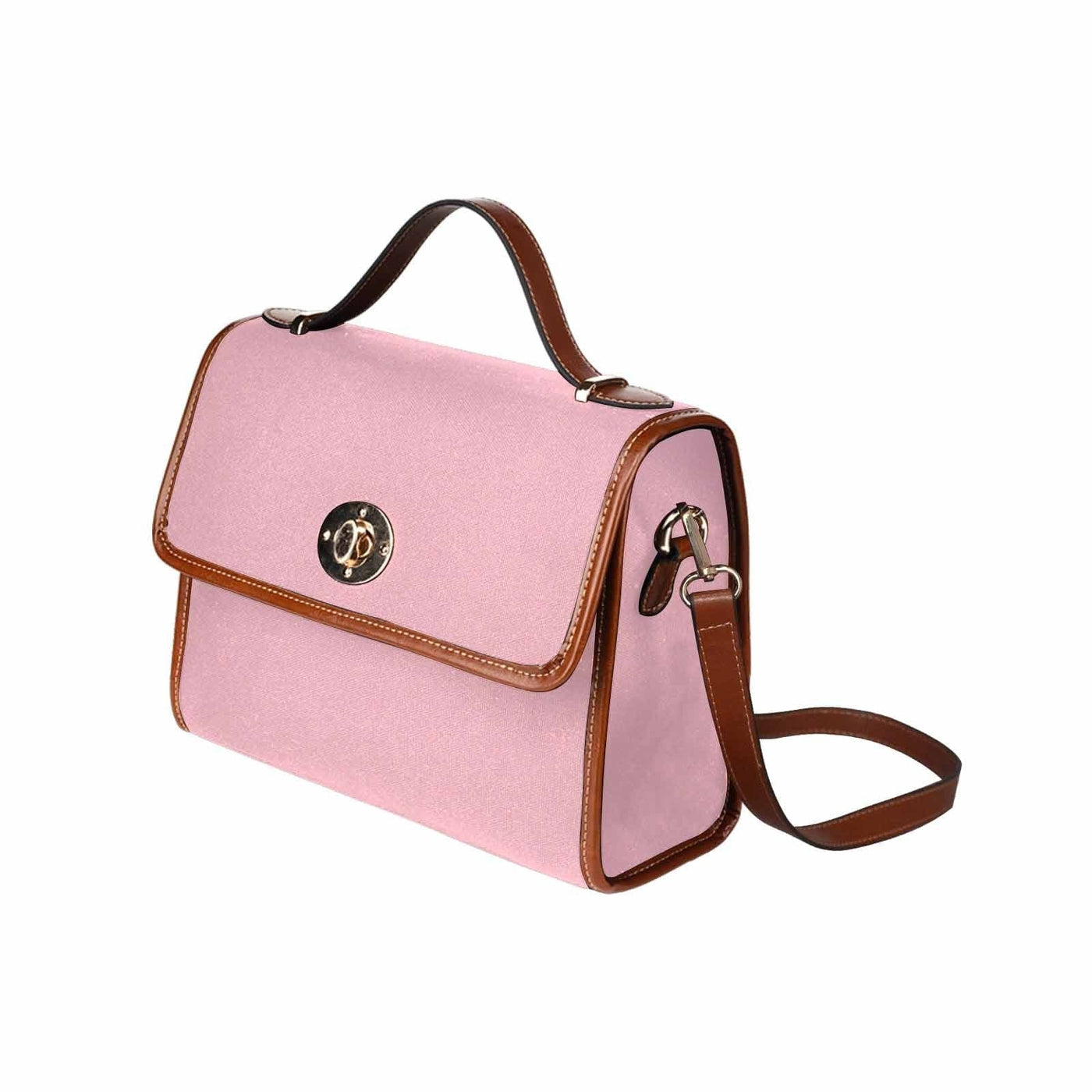 Canvas Handbag - Pink Waterproof Bag /brown Crossbody Strap