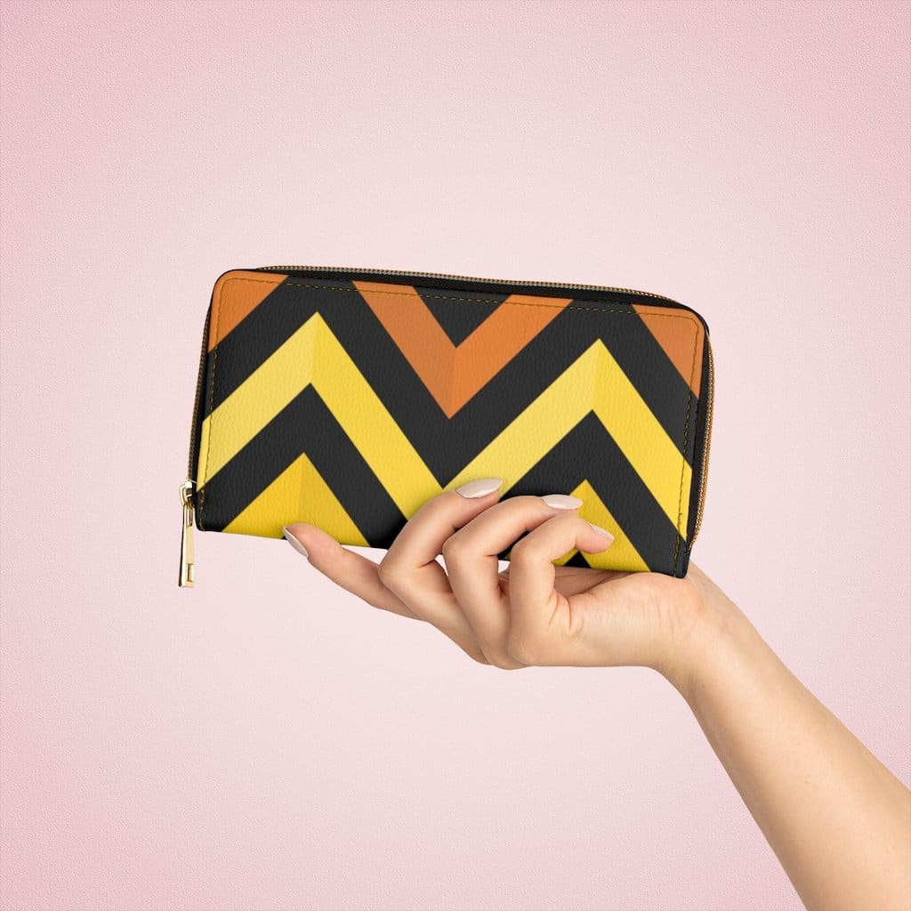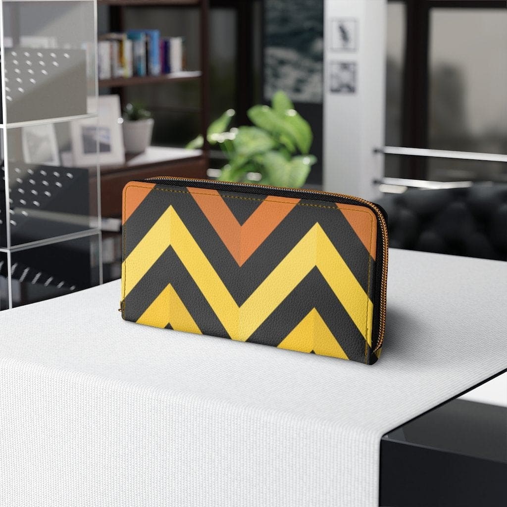Womens Wallet - Zip Purse - Black and Yellow Geometric - Bags/Zipper Wallets